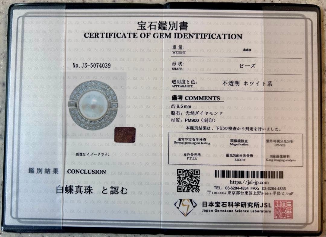 また、パールの周囲を彩るダイヤモンドも一石一石の輝きは良好で、主張しすぎることなく、あくまでパールを引き立てる名脇役として配置されています。