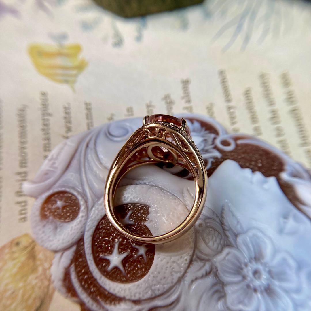 k18ピンクゴールド モルガナイト3.57ct ダイヤモンド 指輪 リング