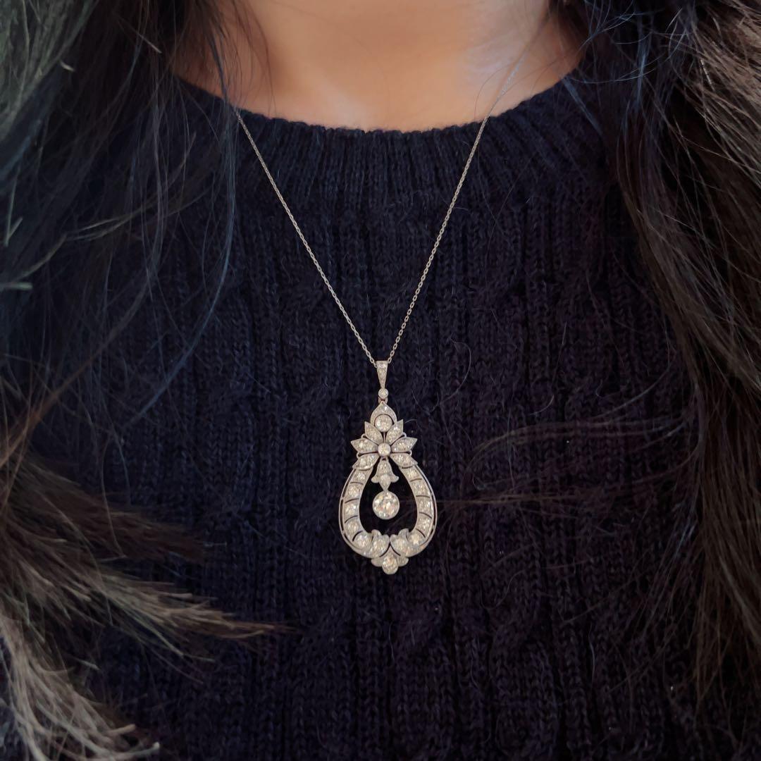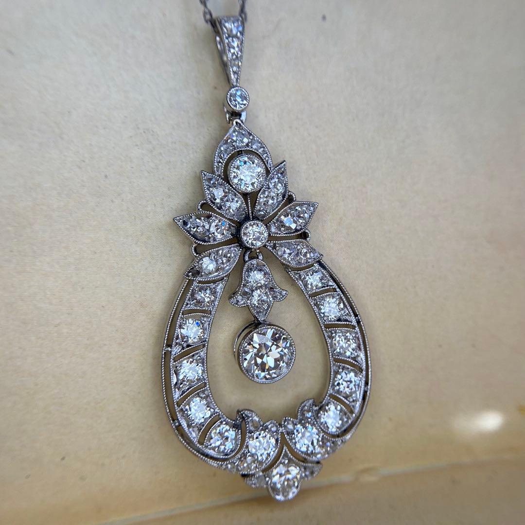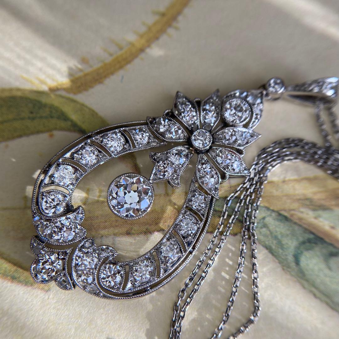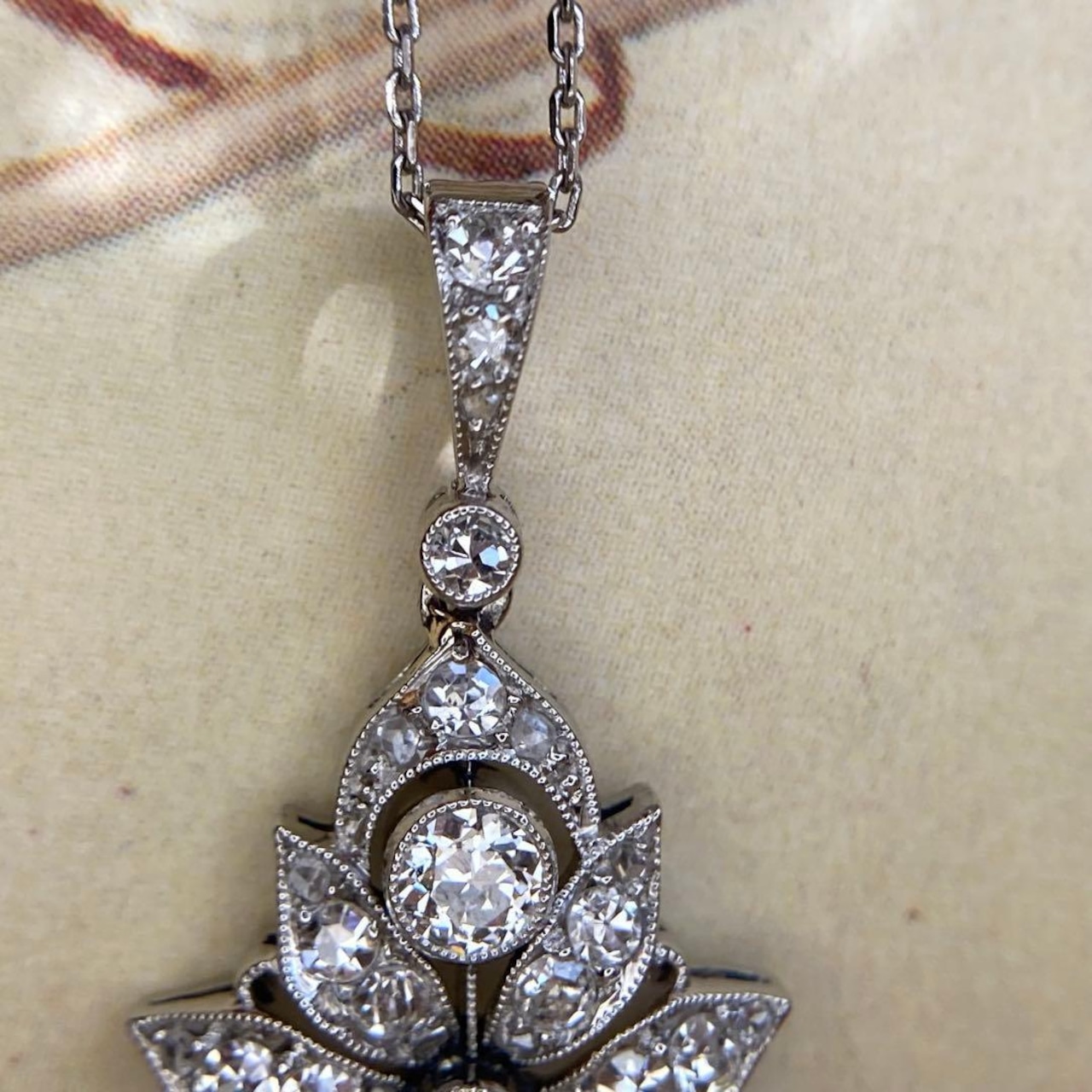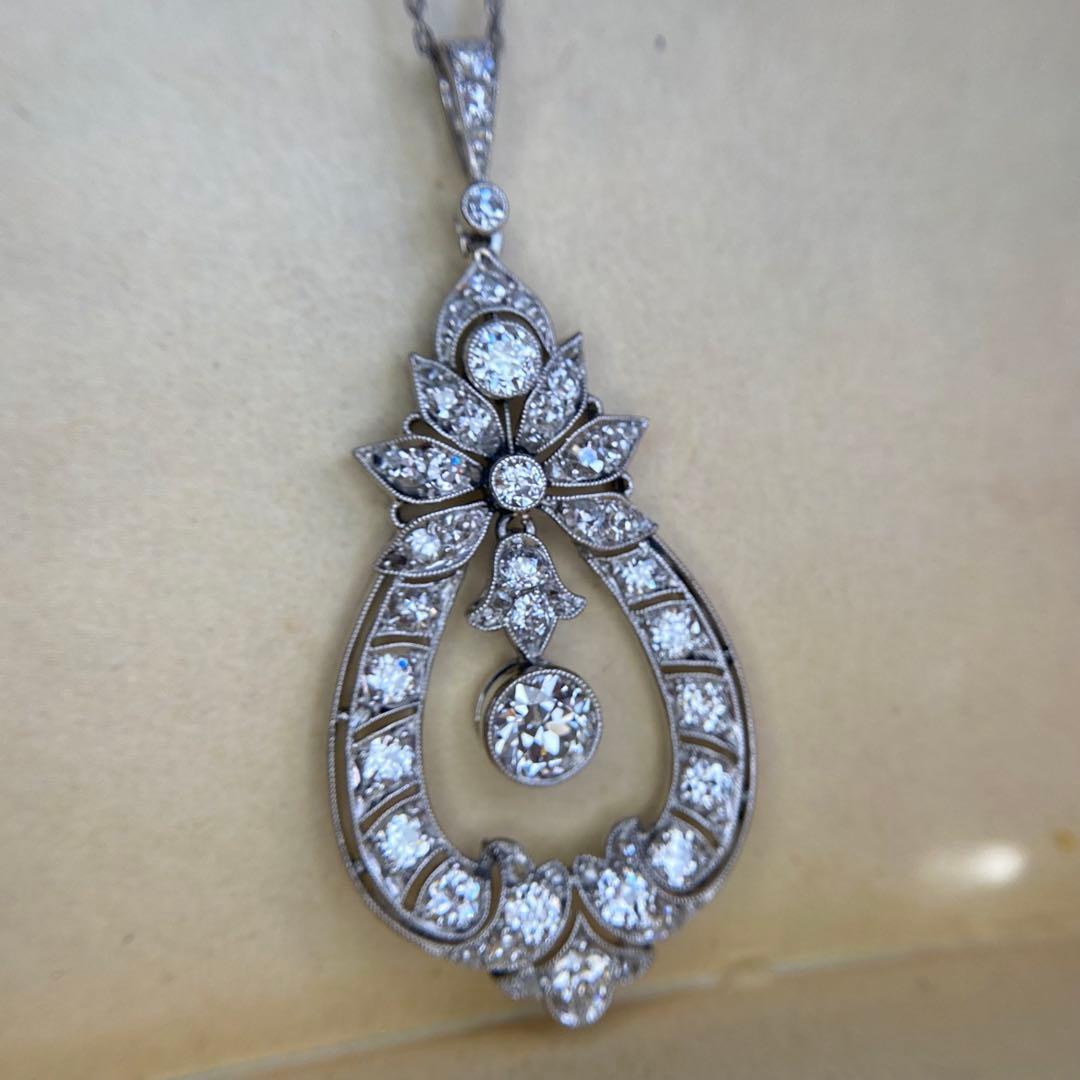 pt950 大正〜昭和初期 オールドヨーロピアンカットダイヤモンド ネックレス