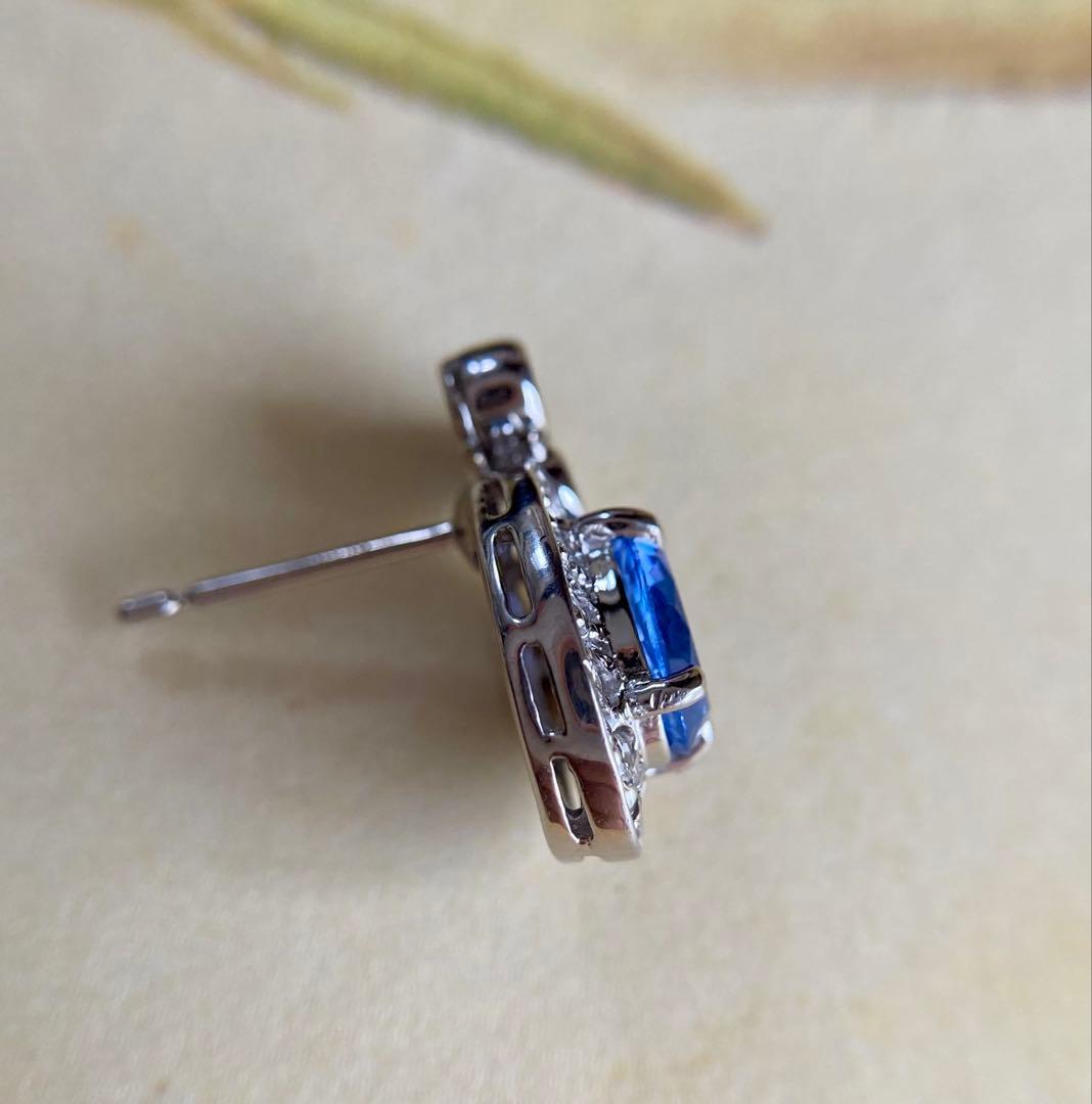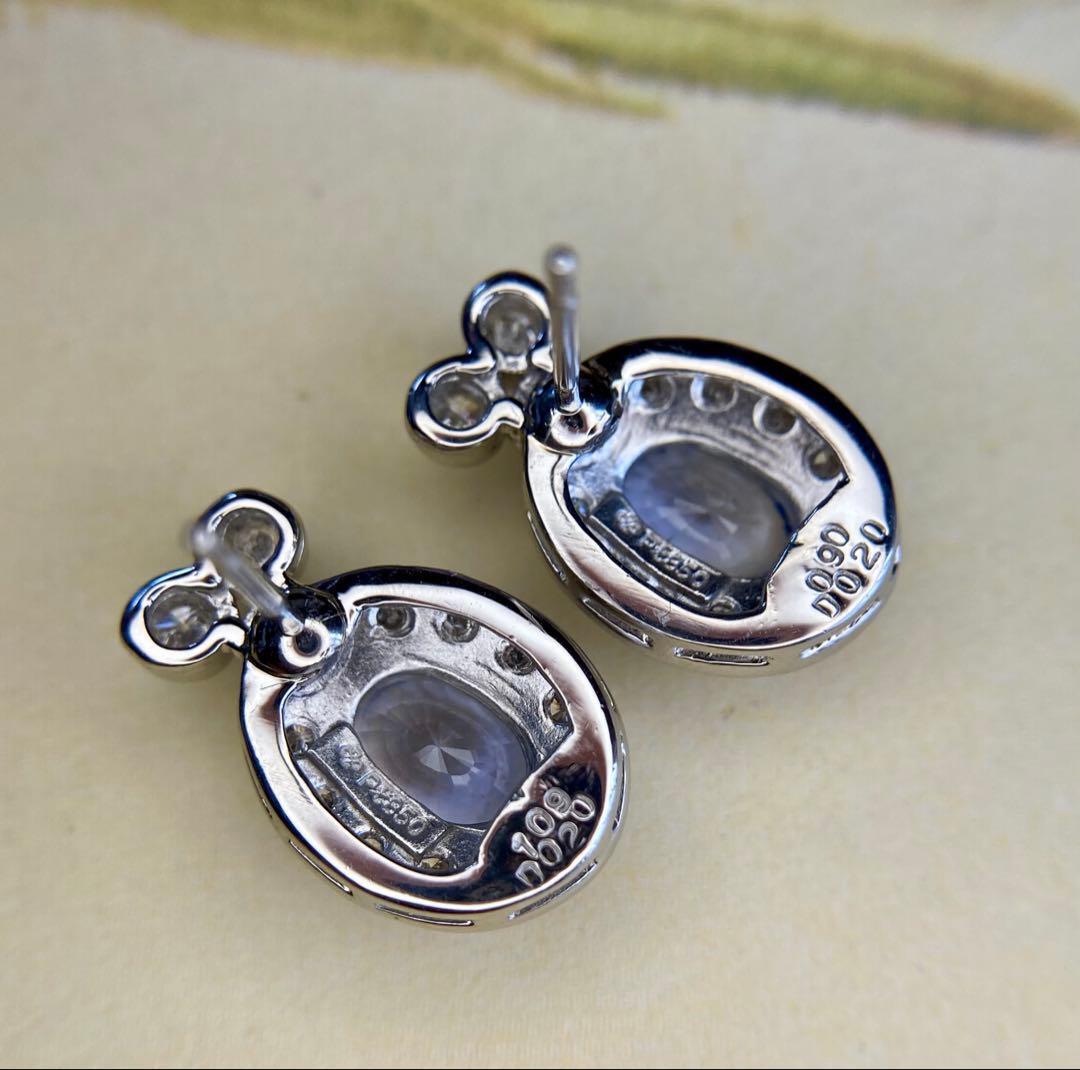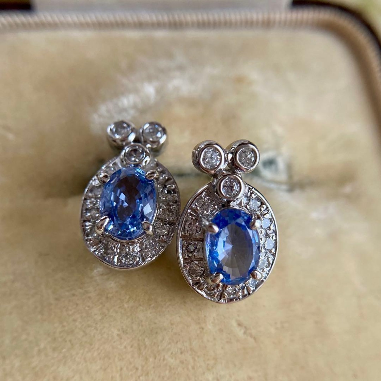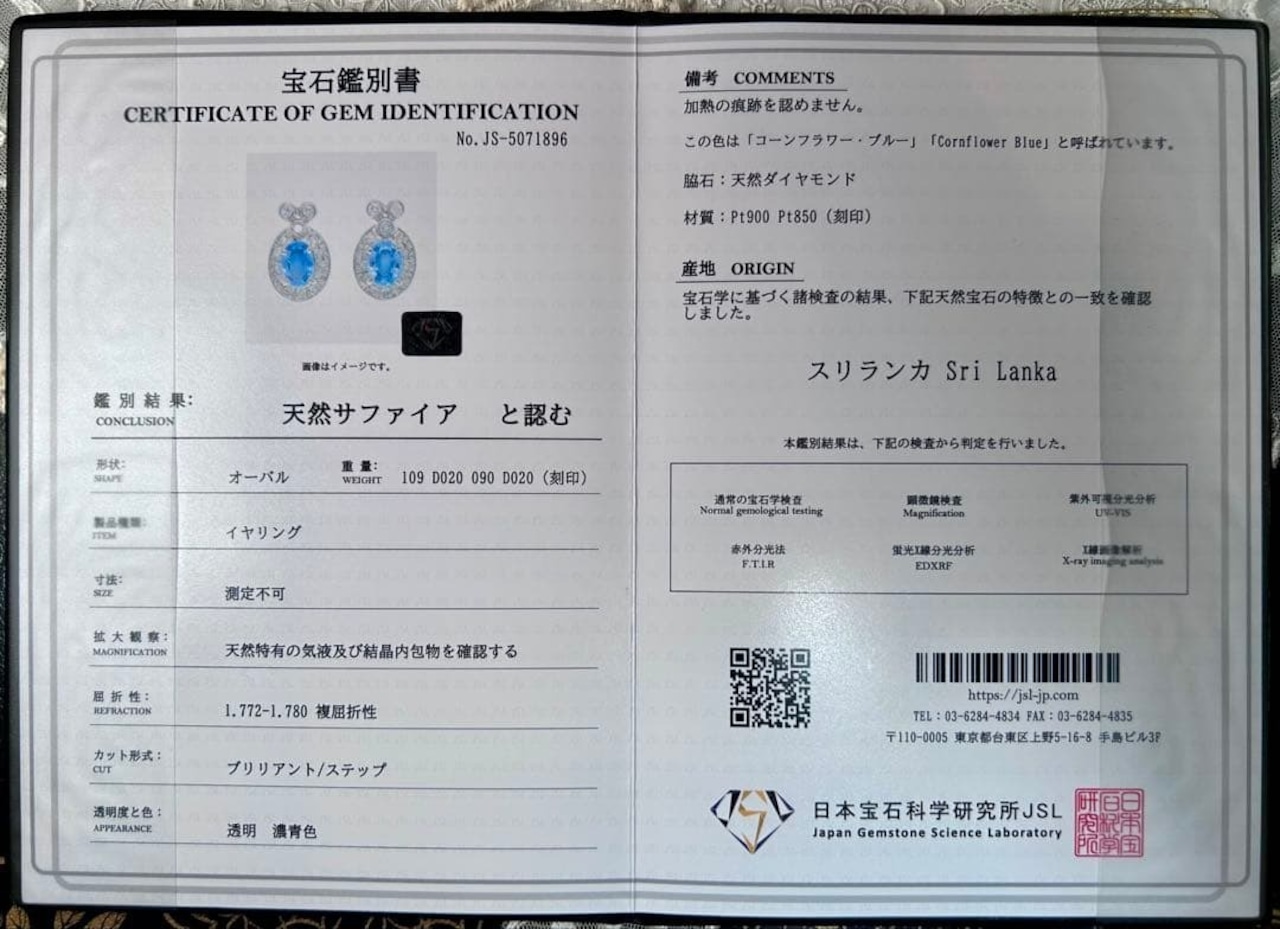 pt900 非加熱スリランカ産サファイア 1.09ct / 0.90ct ダイヤモンド ピアス