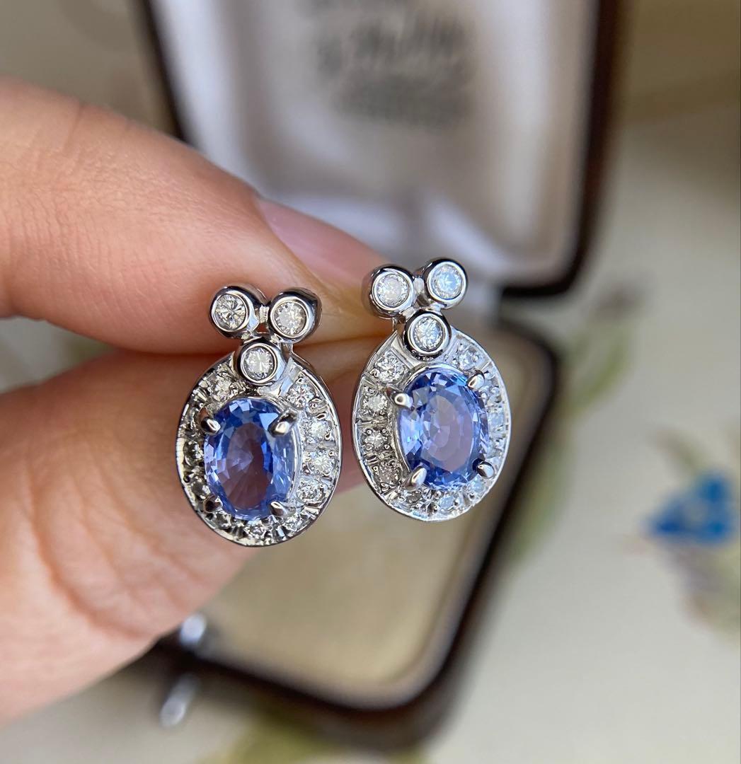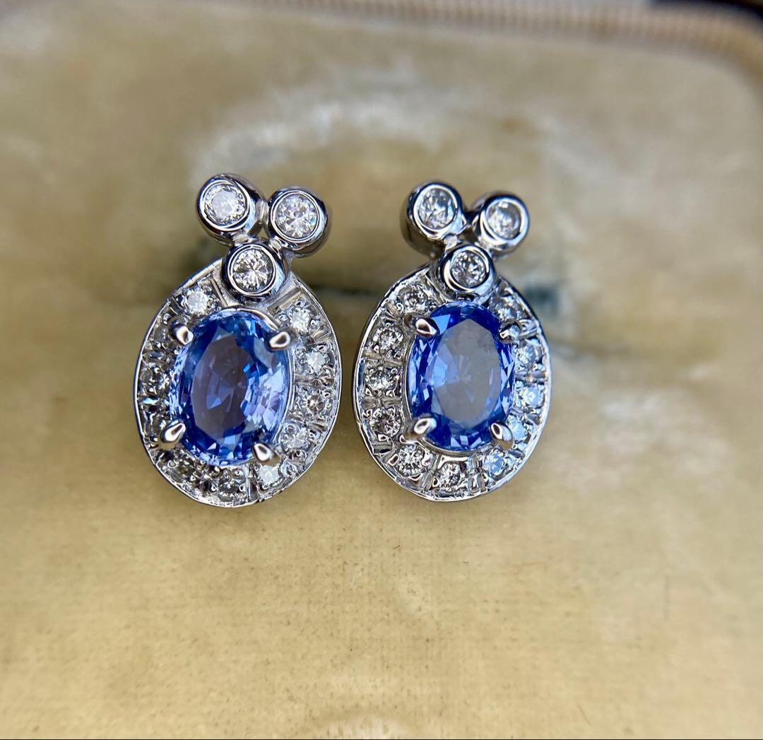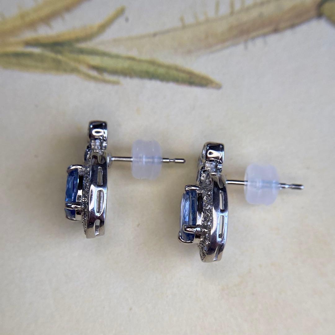 pt900 非加熱スリランカ産サファイア 1.09ct / 0.90ct ダイヤモンド ピアス