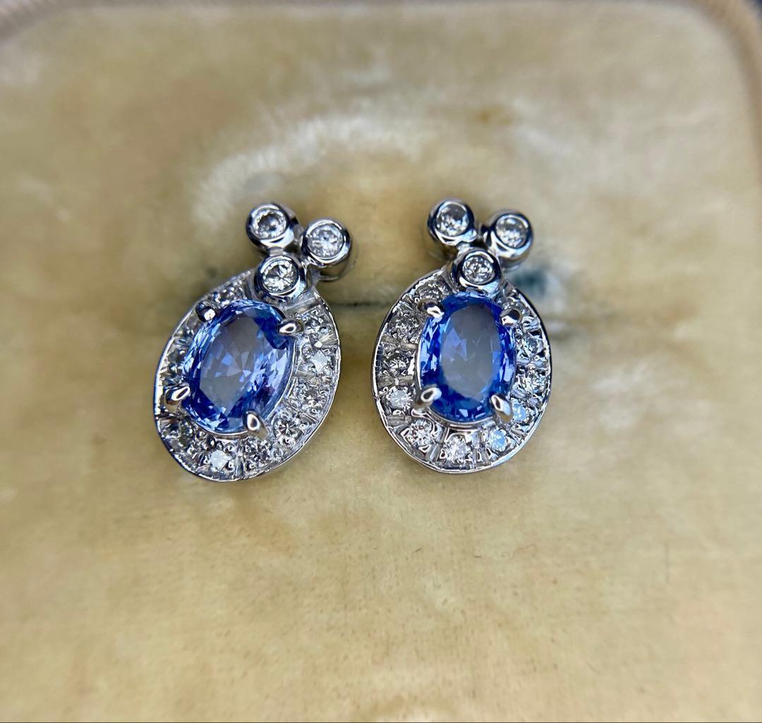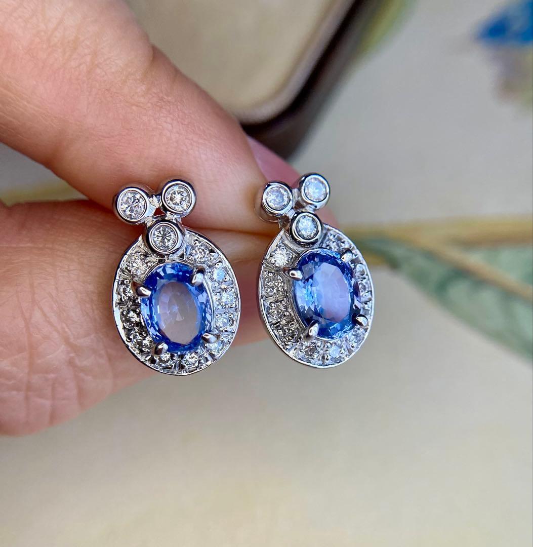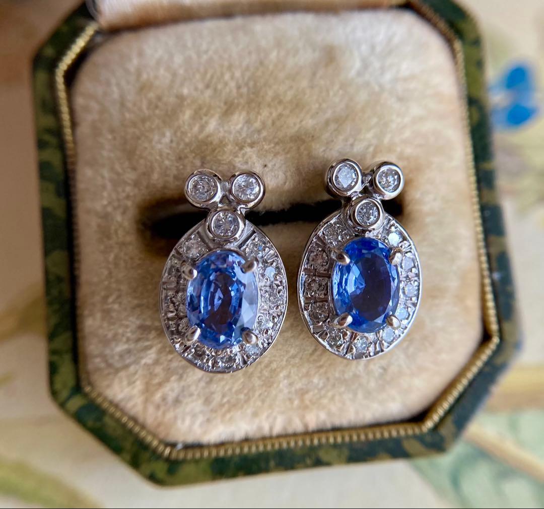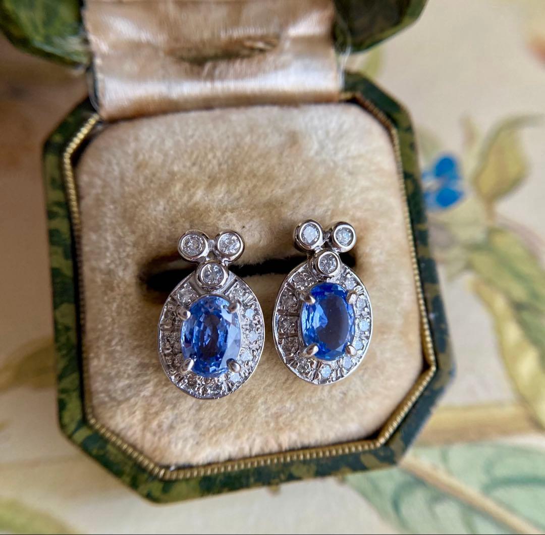 pt900 非加熱スリランカ産サファイア 1.09ct / 0.90ct ダイヤモンド ピアス