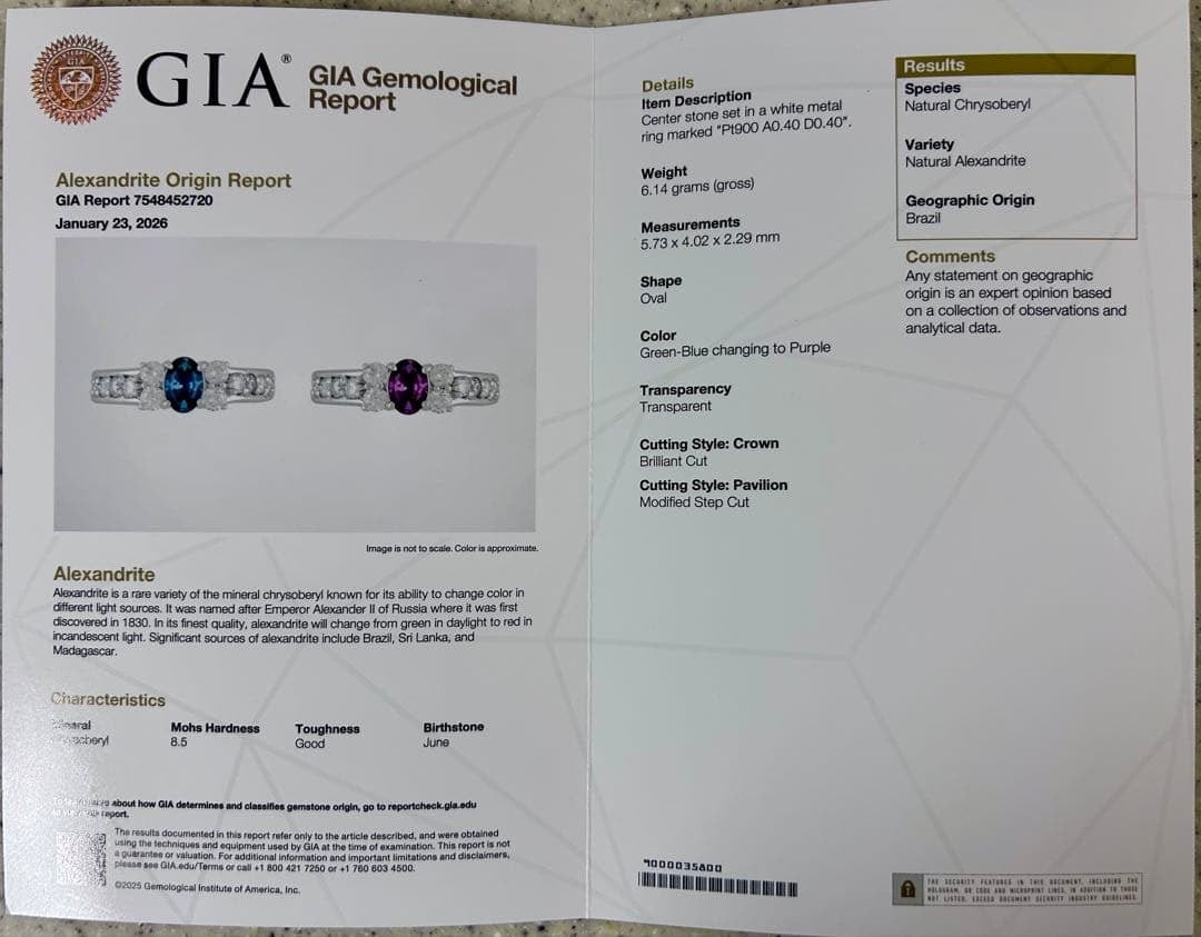 pt900 GIA ブラジル産 アレキサンドライト0.40ct D0.40ct