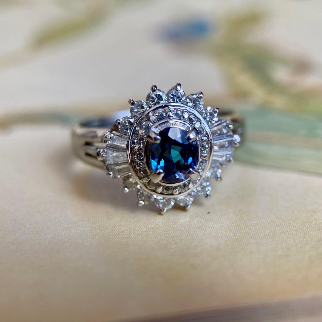pt900陽刻 GIA ブラジル産 アレキサンドライト0.39ct D0.58ct 指輪