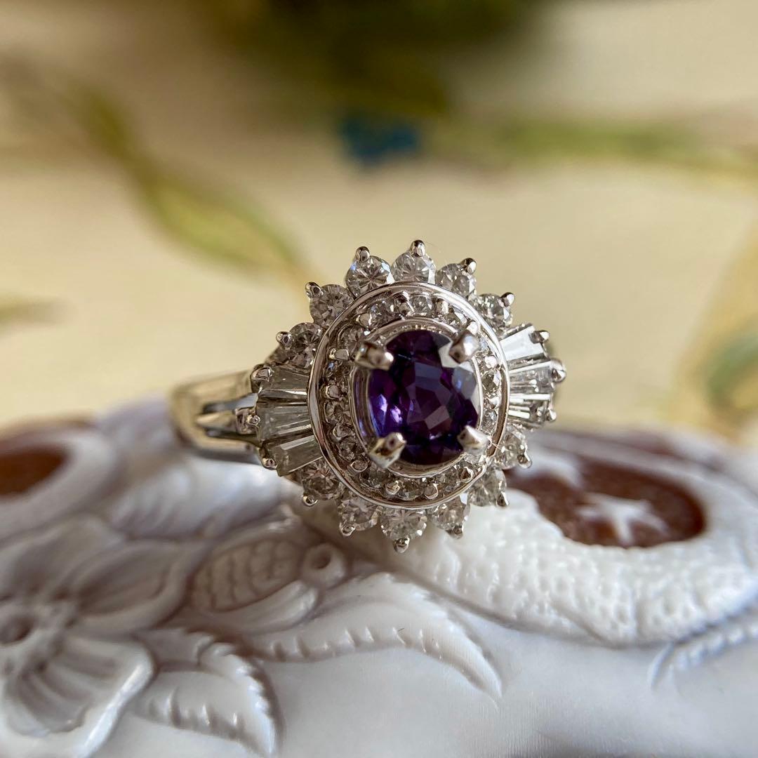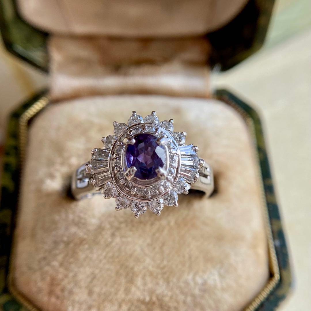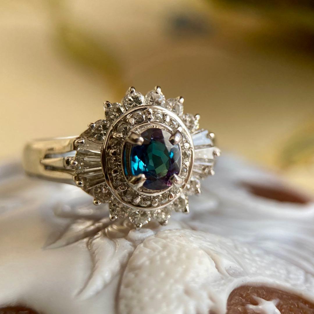 妖艶ともいえるほど印象的なカラーチェンジを見せる、ブラジル産アレキサンドライトのリングです。