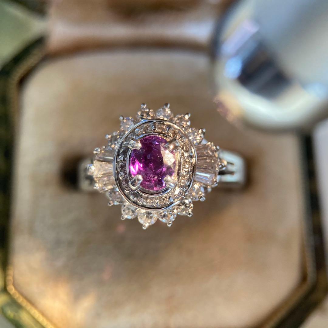 あたたかな灯りの下では、まるで濃厚な赤ワインのような赤紫へ — GIA鑑別書付き