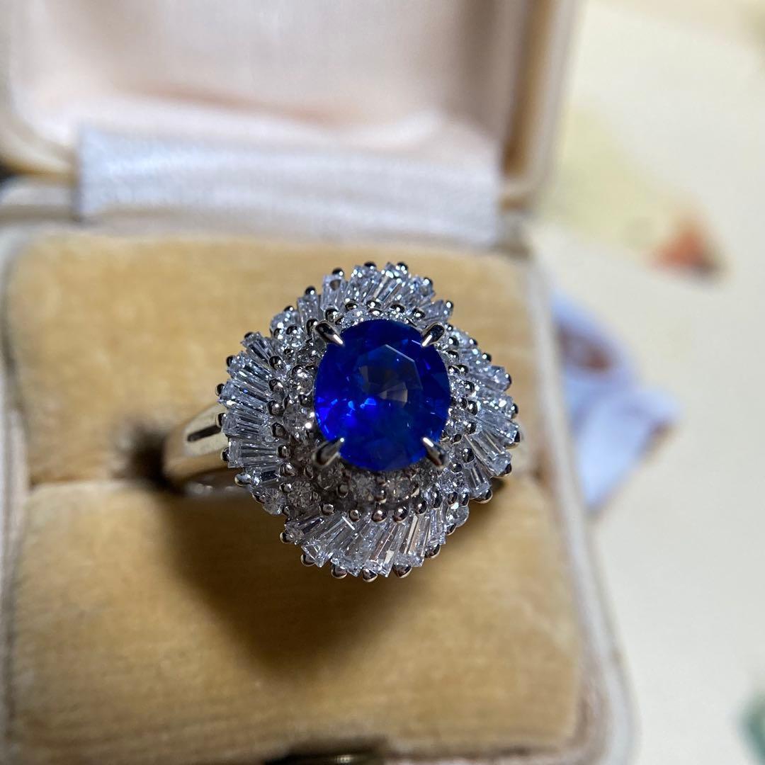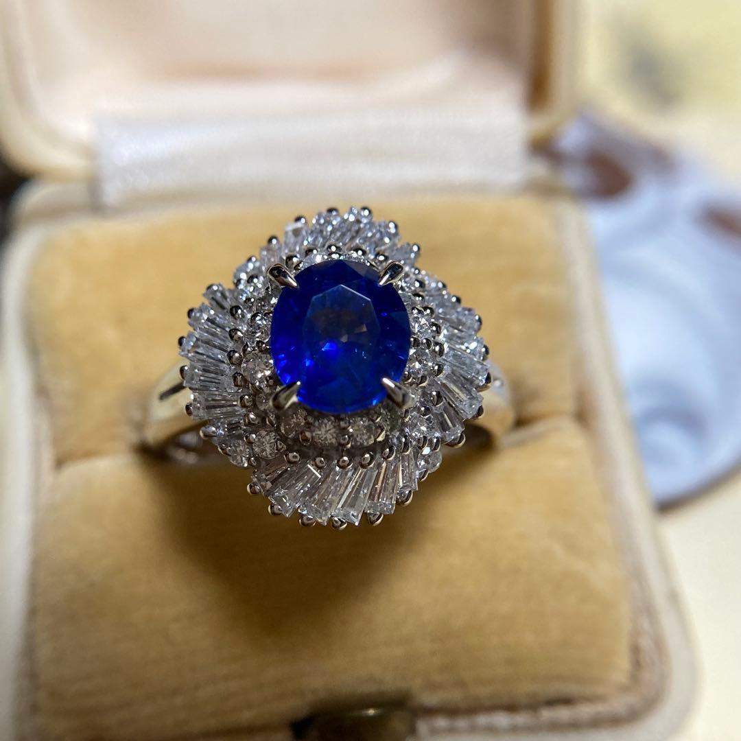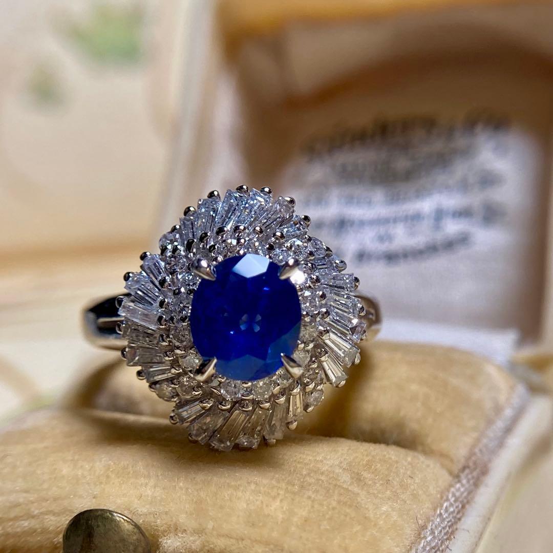 pt900 スリランカ産鮮やかなサファイア ダイヤモンド クラシカル 指輪