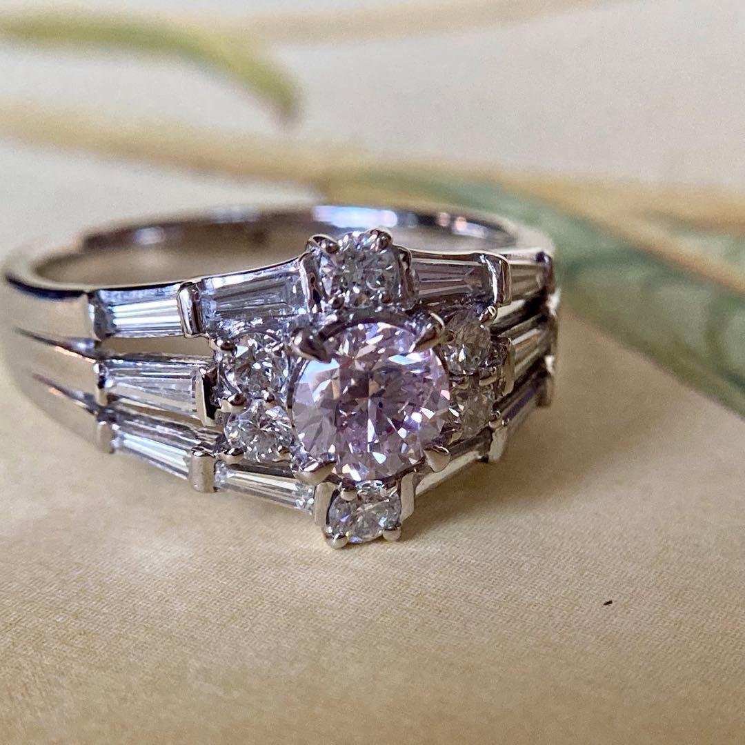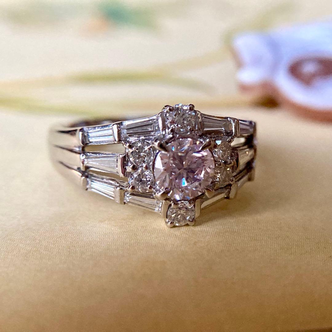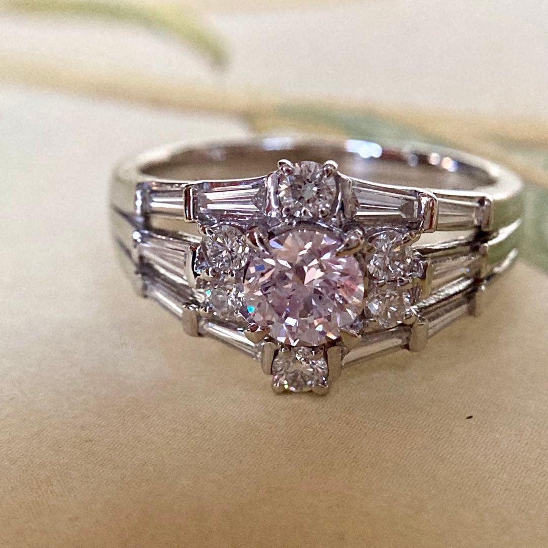 pt900 天然ピンクダイヤモンド0.624ct ダイヤモンド0.83ct 指輪