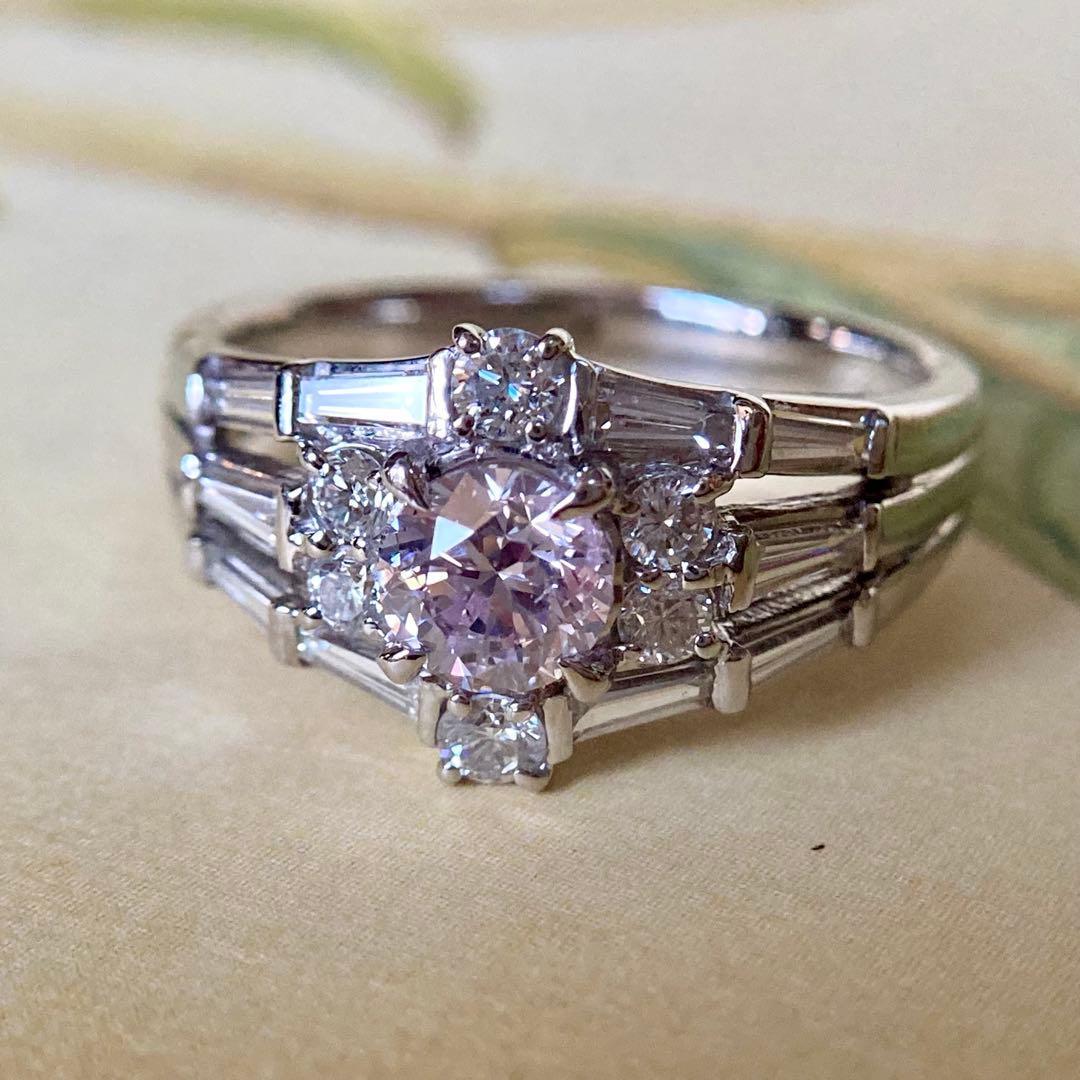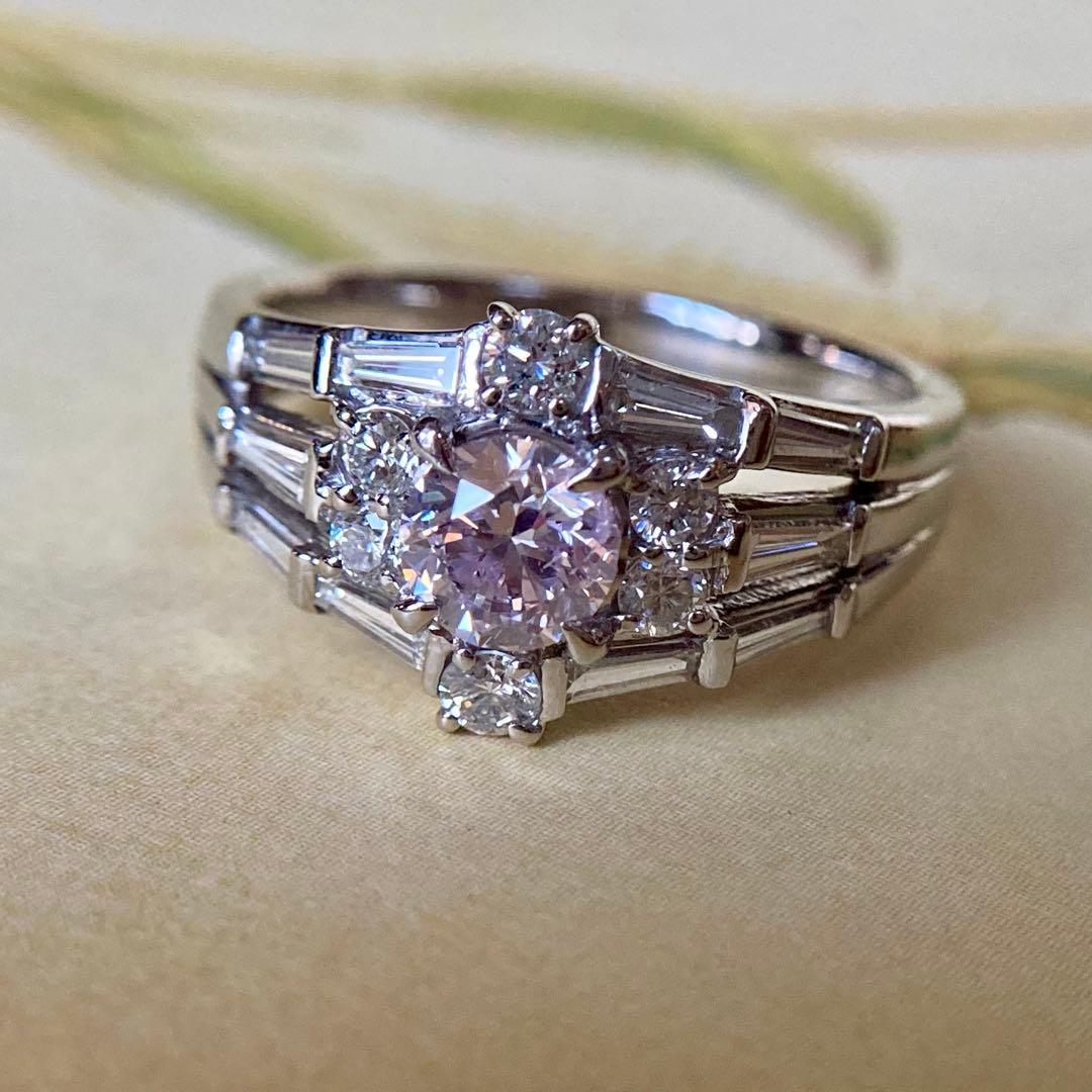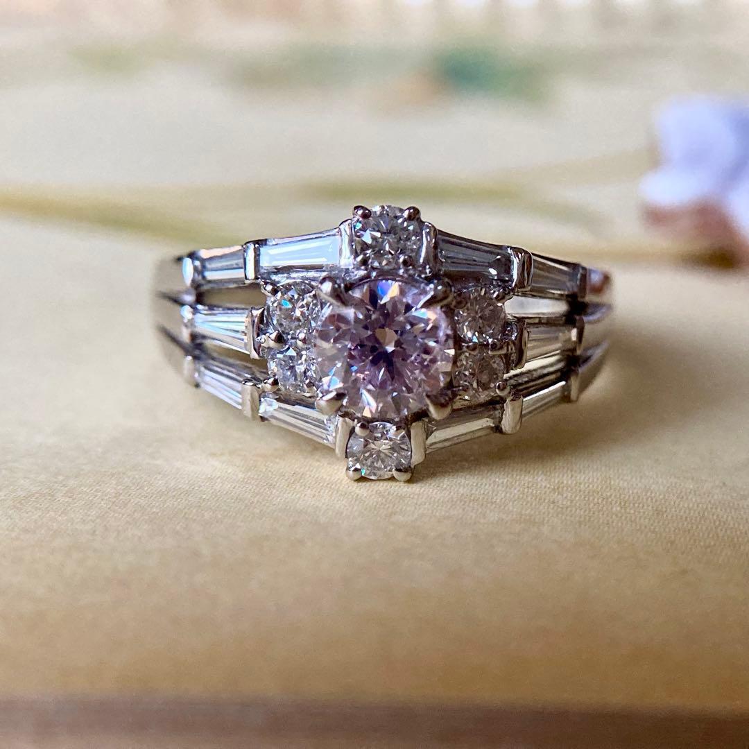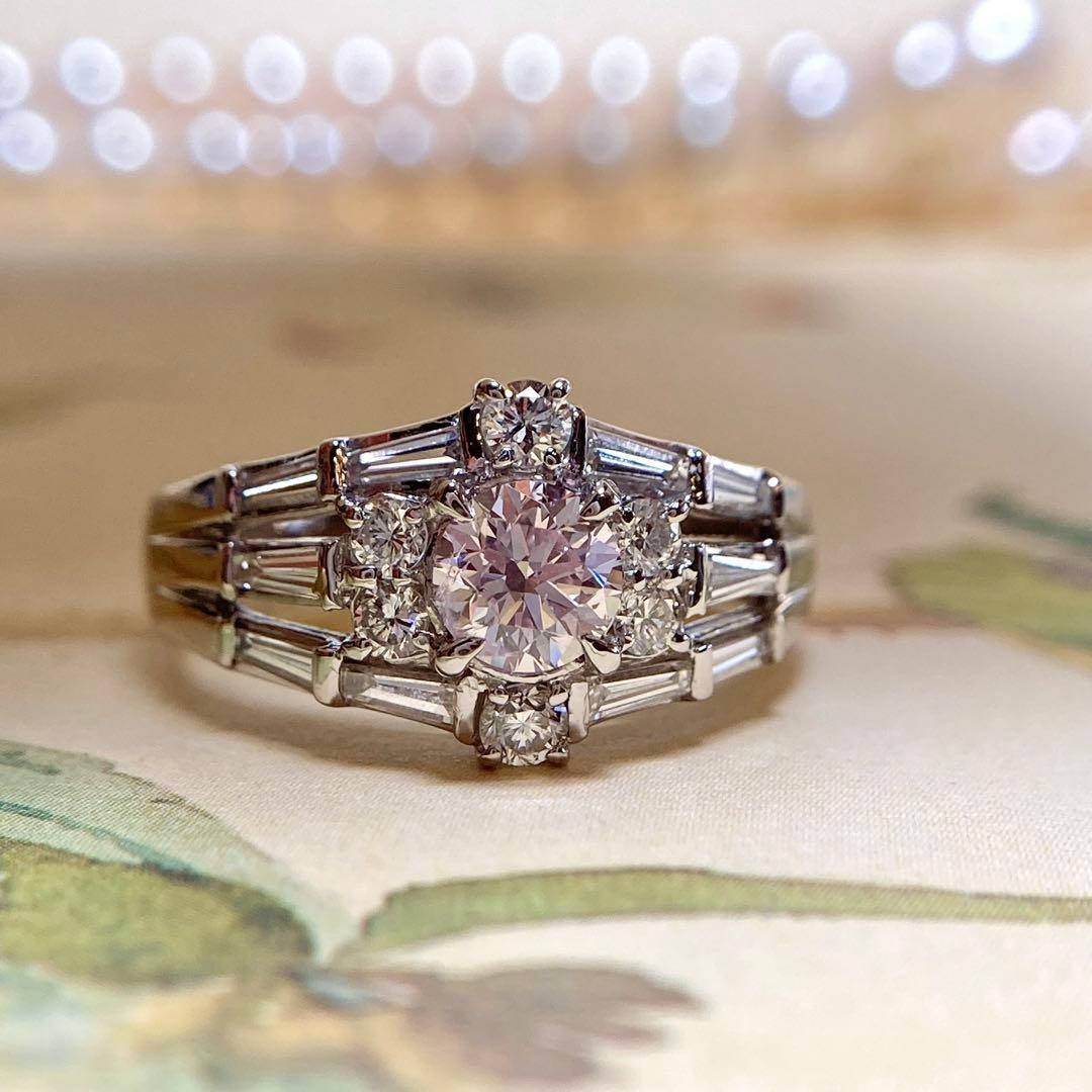 pt900 天然ピンクダイヤモンド0.624ct ダイヤモンド0.83ct 指輪