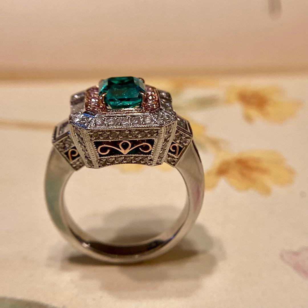 k18 / t900 セレブのジュエリー コロンビア産エメラルド F1 指輪 リング