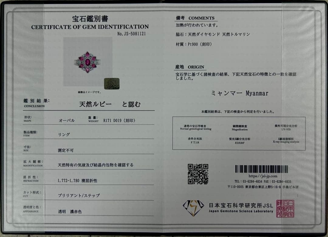 ・ 1.71ct(ルビー 約0.75~0.8ct、トルマリン約0.96~0.91ctと推定)