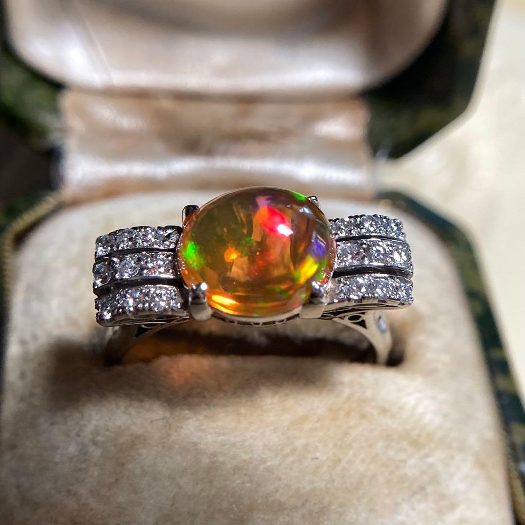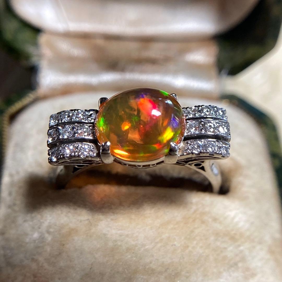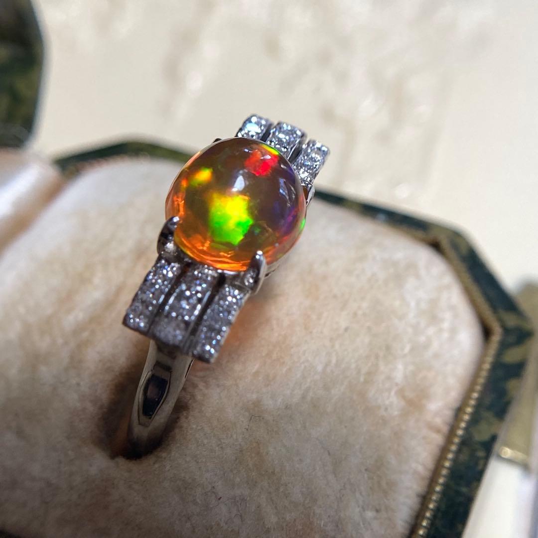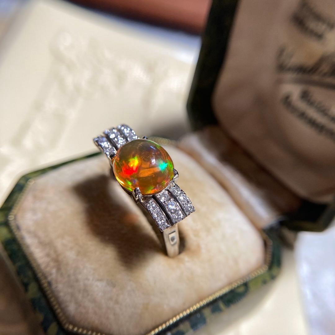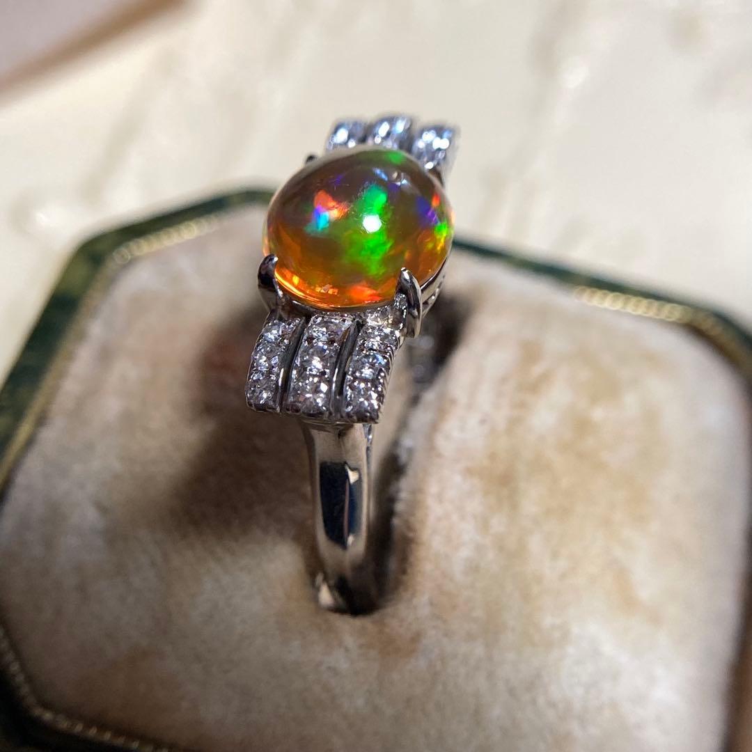 pm900 天賞堂 昭和初期 メキシコ産ファイヤオパール ダイヤモンド 指輪
