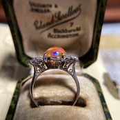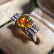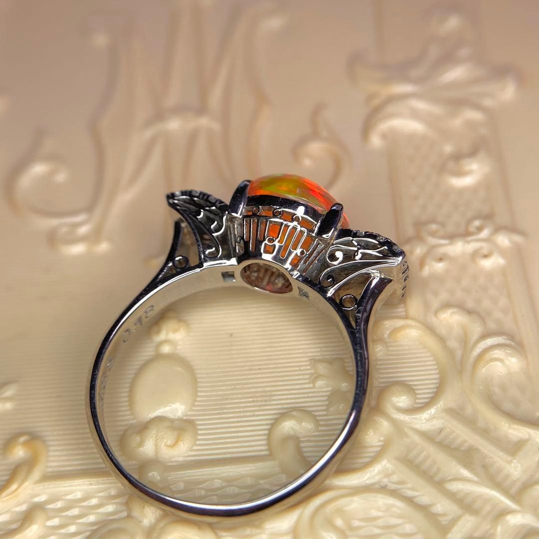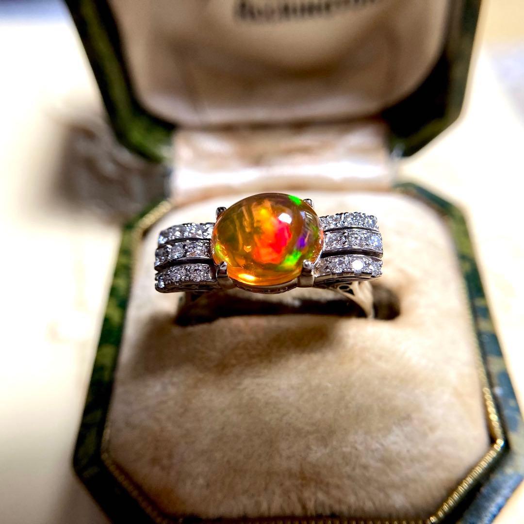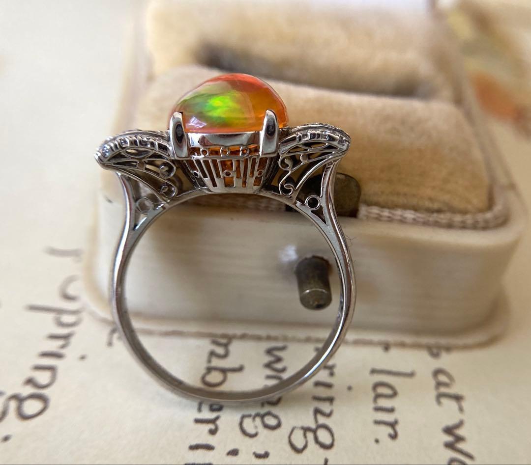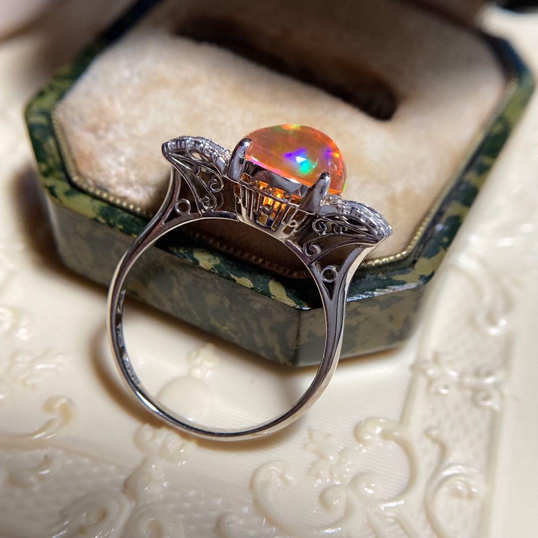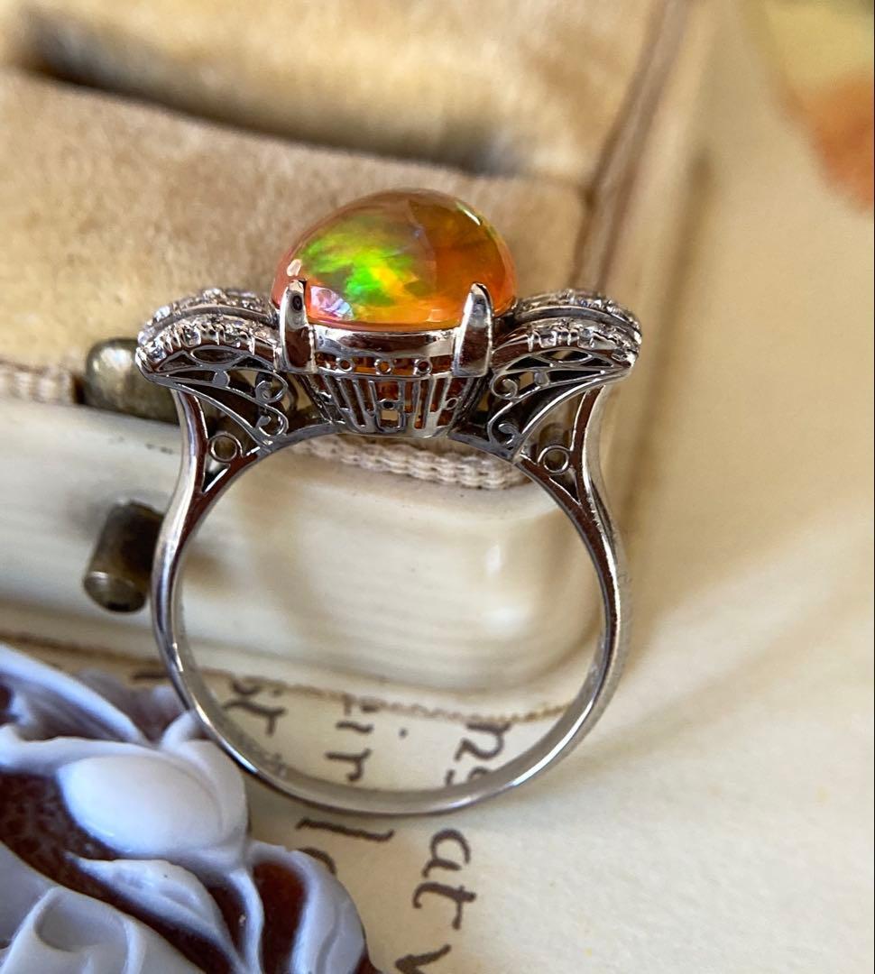 pm900 天賞堂 昭和初期 メキシコ産ファイヤオパール ダイヤモンド 指輪