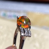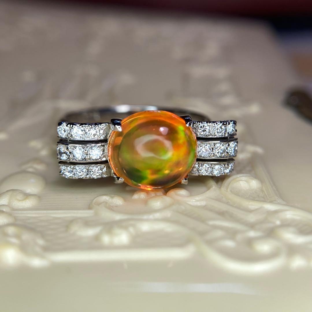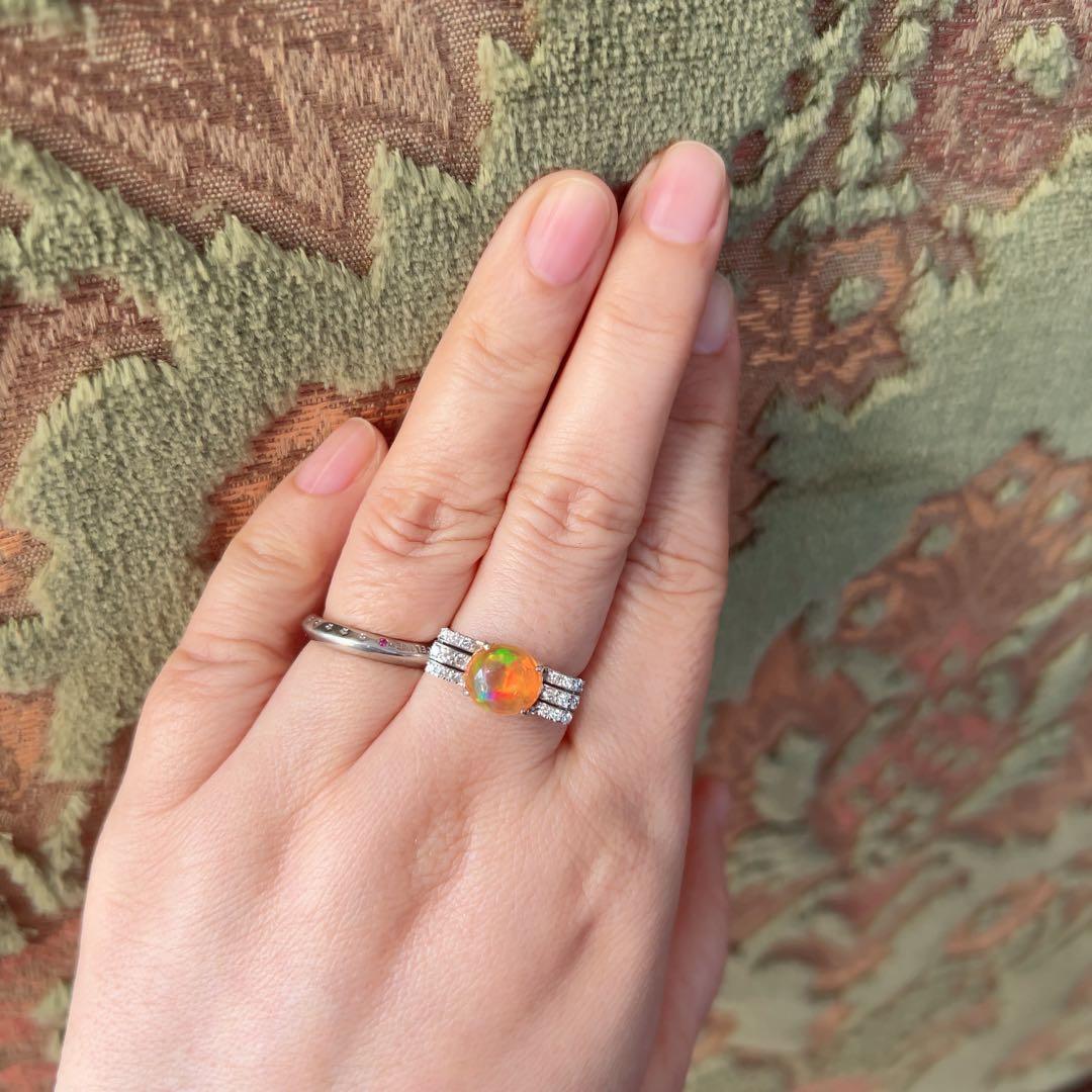 温かな光を宿したような輝きが印象的な、ファイアオパールのリング。