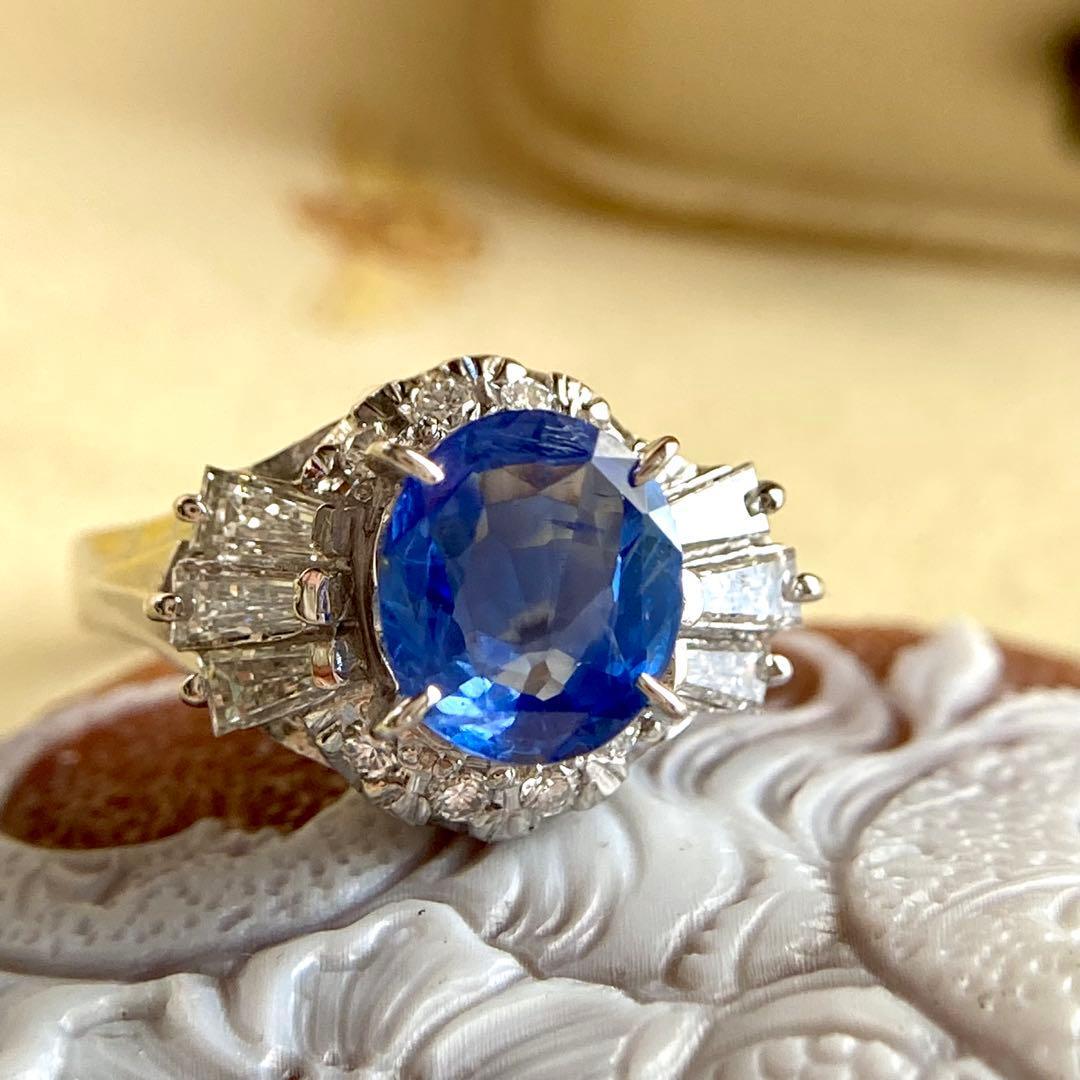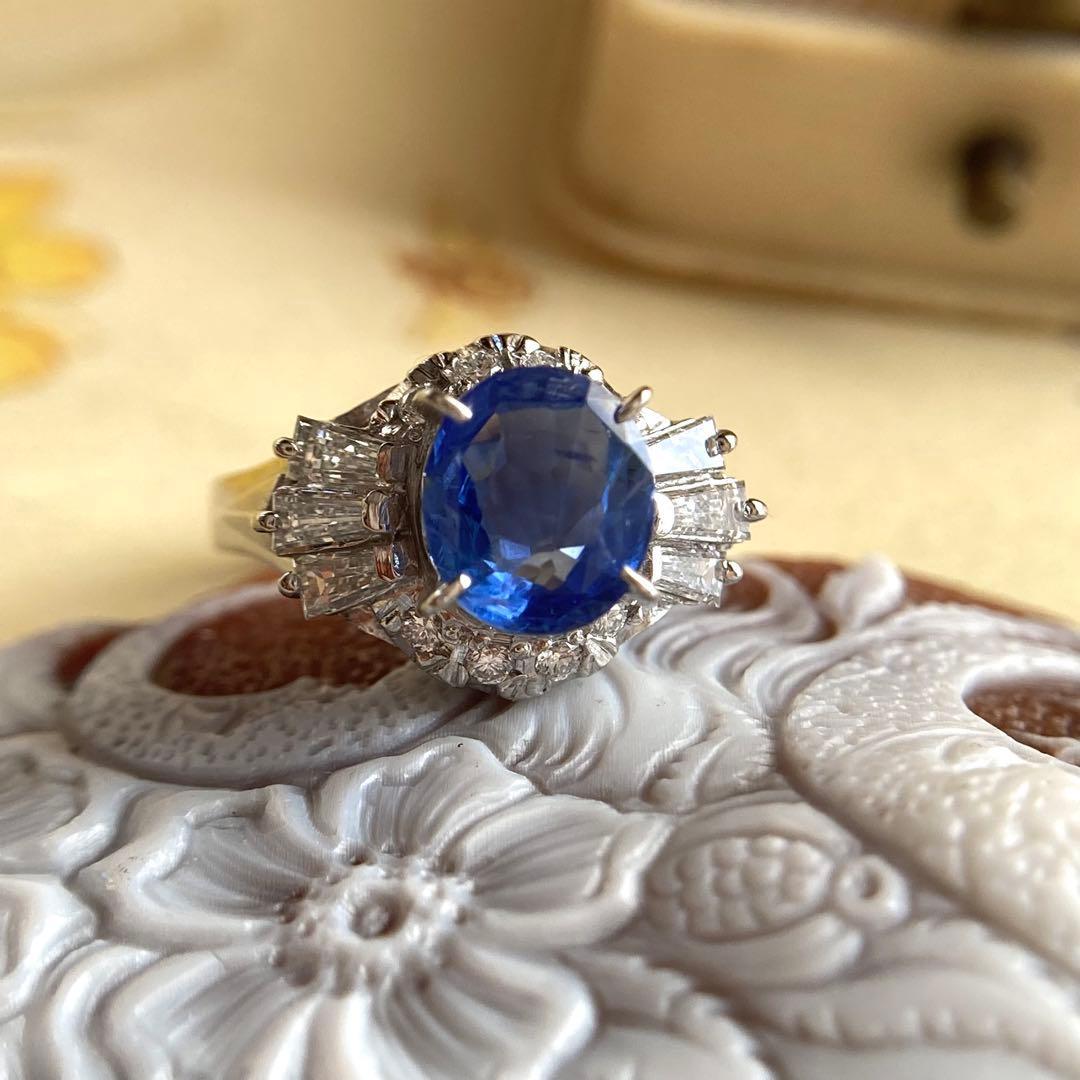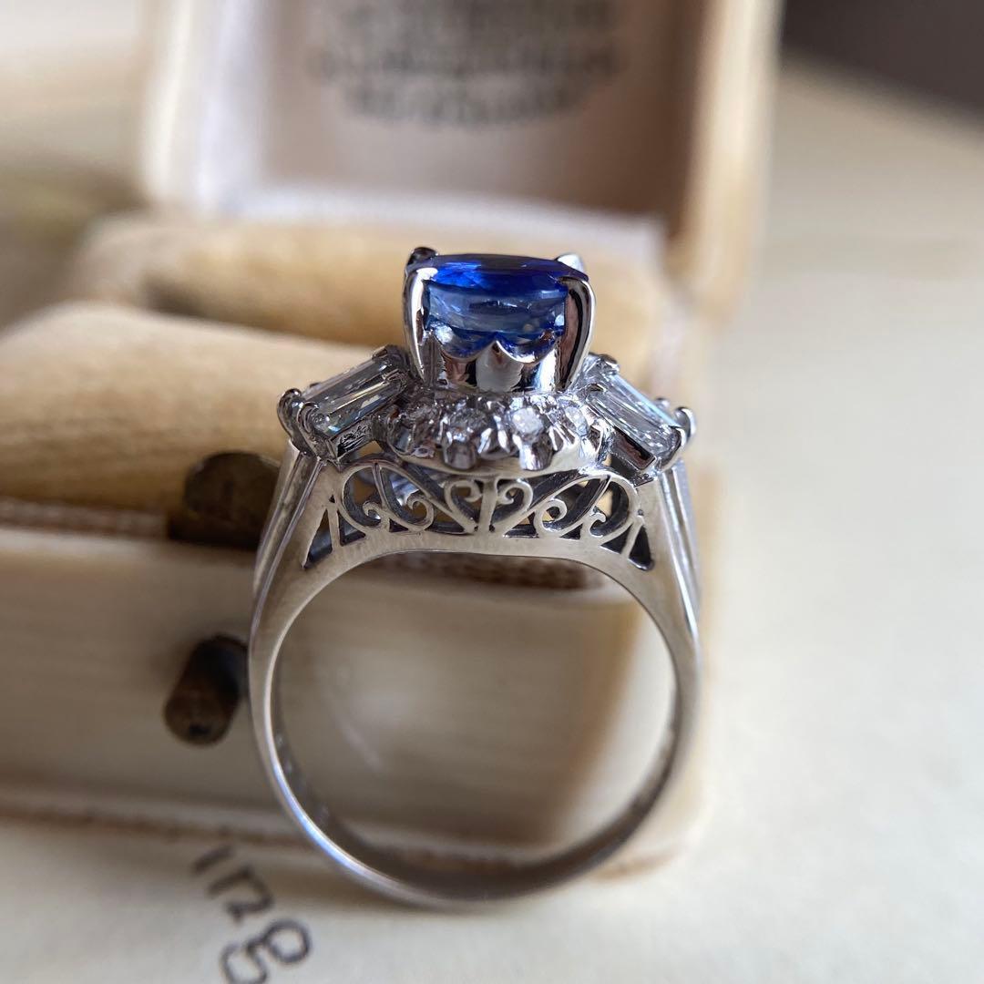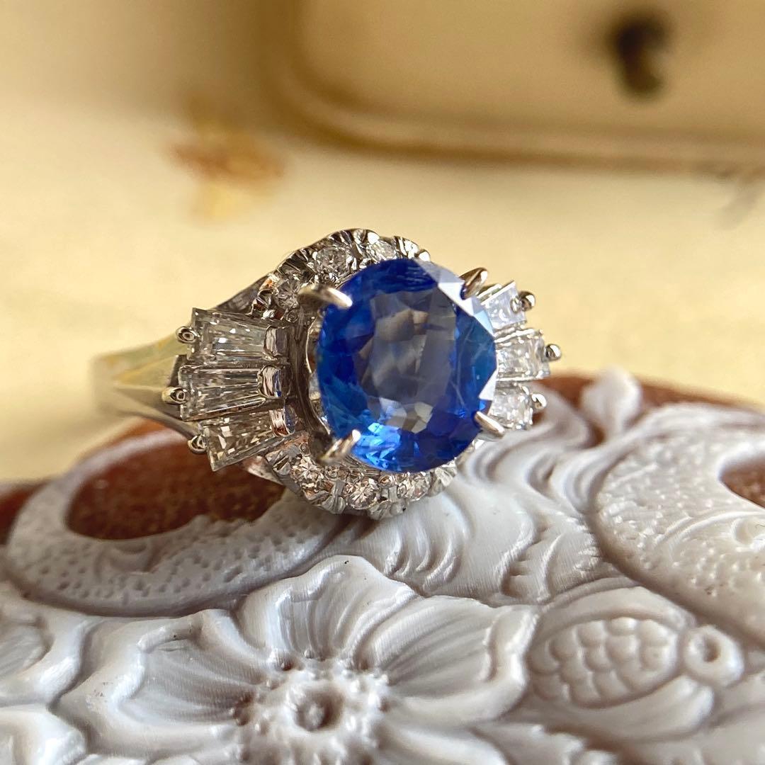 pm スリランカ産非加熱サファイア ダイヤモンド 指輪 リング 昭和ヴィンテージ