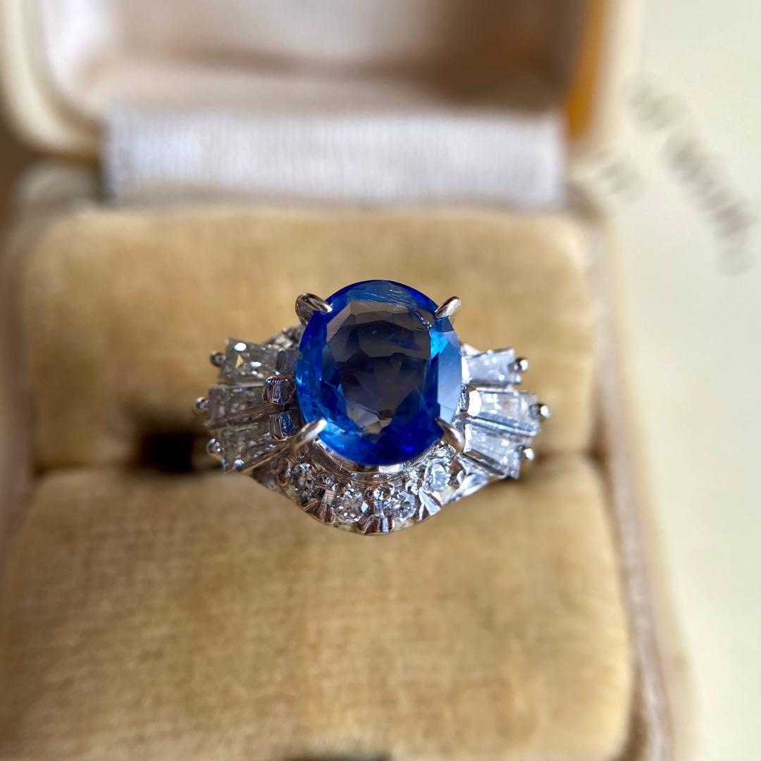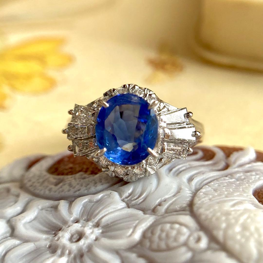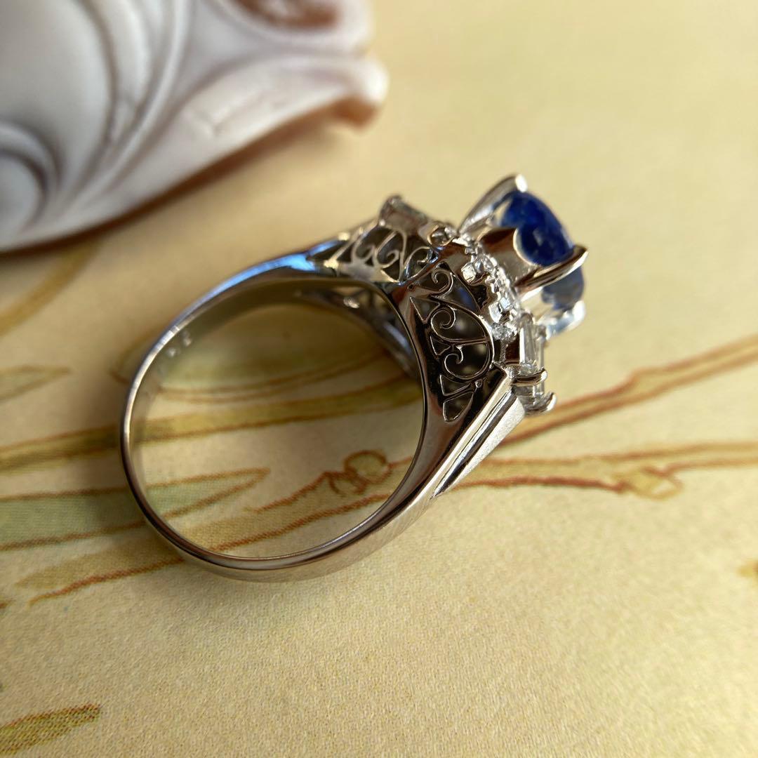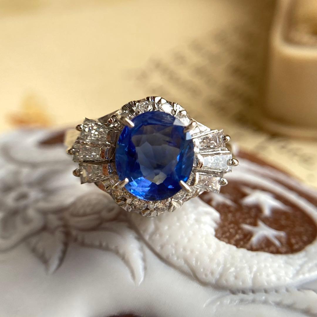 pm スリランカ産非加熱サファイア ダイヤモンド 指輪 リング 昭和ヴィンテージ