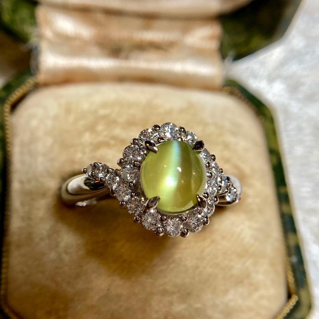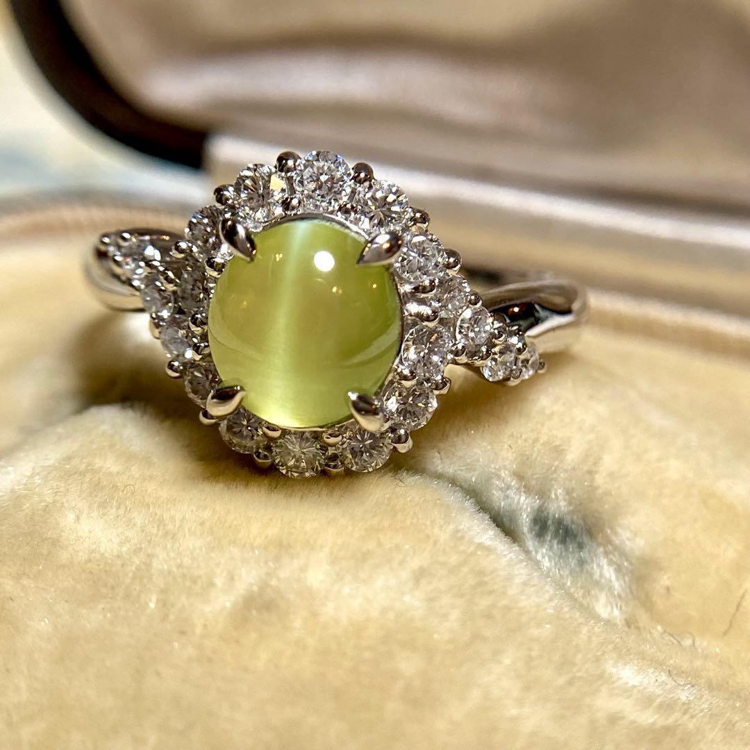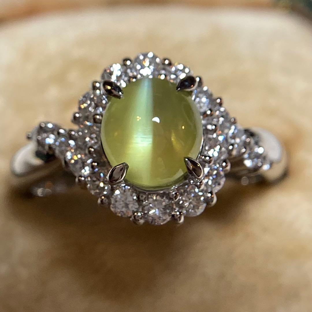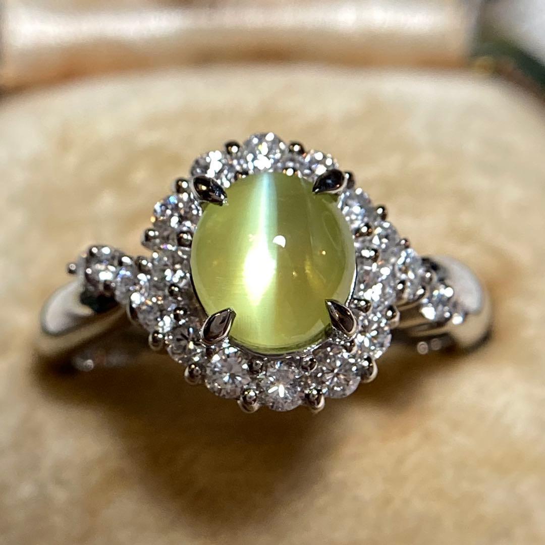 pt900 ミルク&ハニー 透明度抜群クリソベリルキャッツアイ ダイヤ 指輪