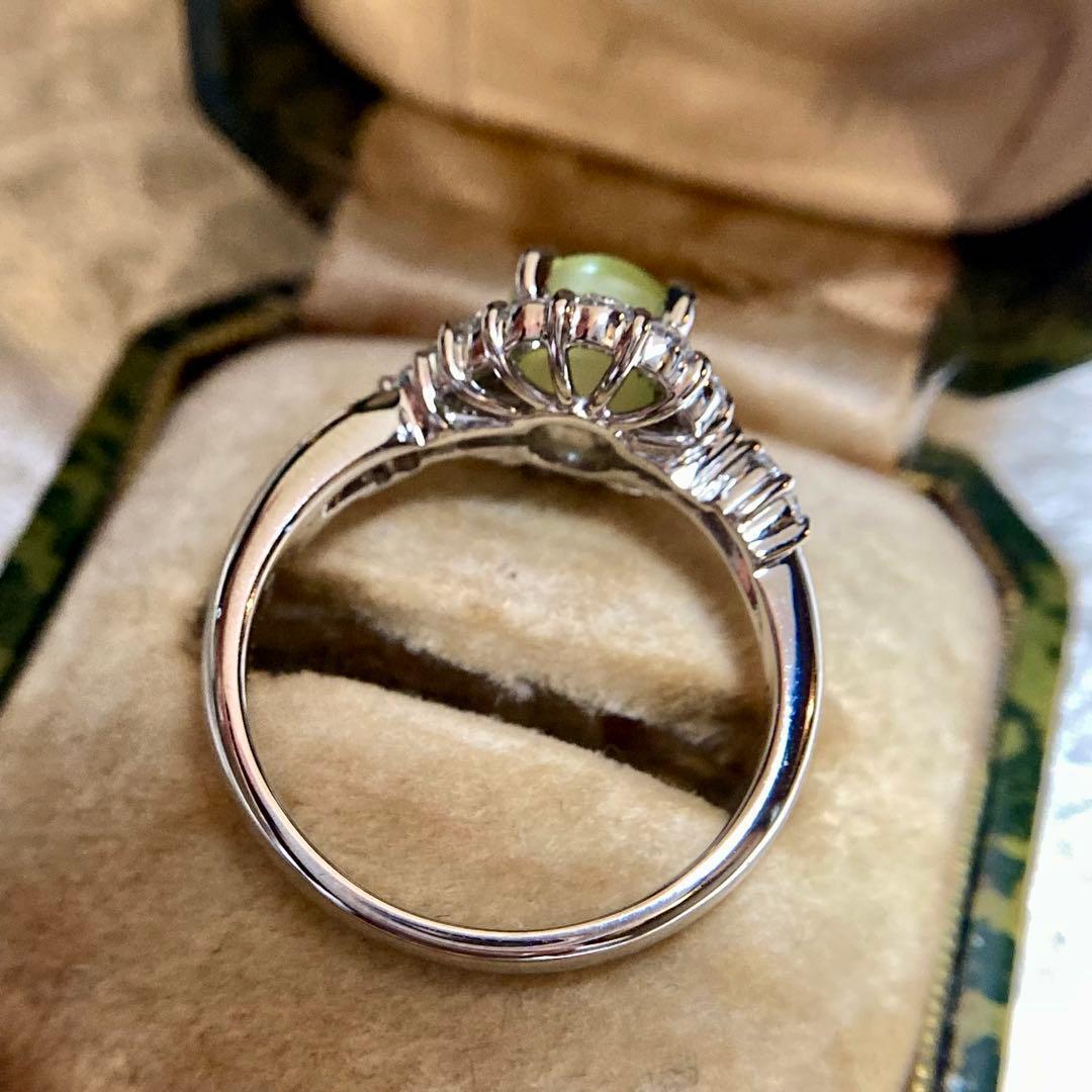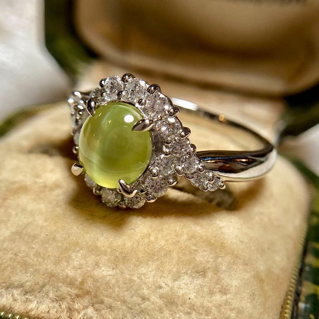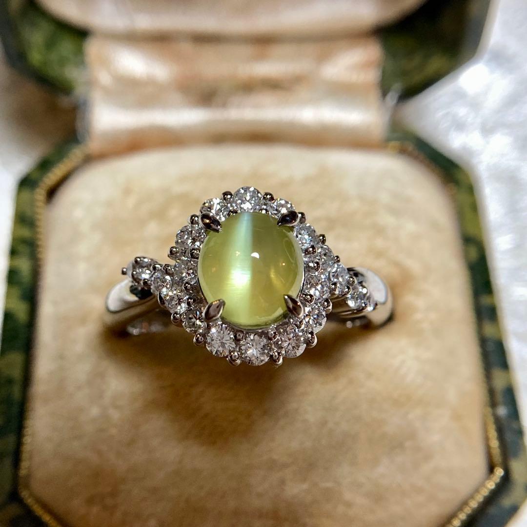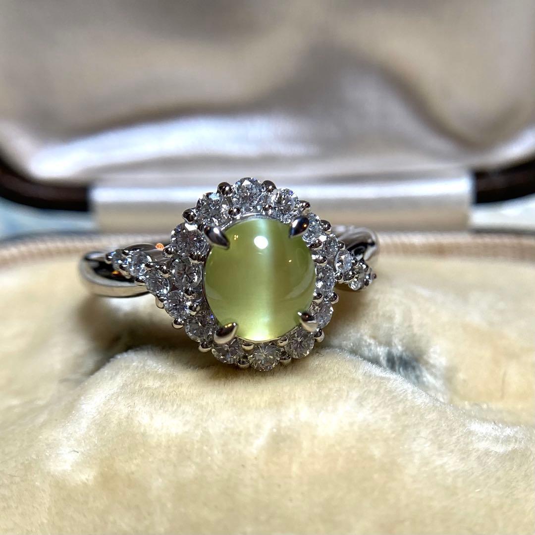 pt900 ミルク&ハニー 透明度抜群クリソベリルキャッツアイ ダイヤ 指輪