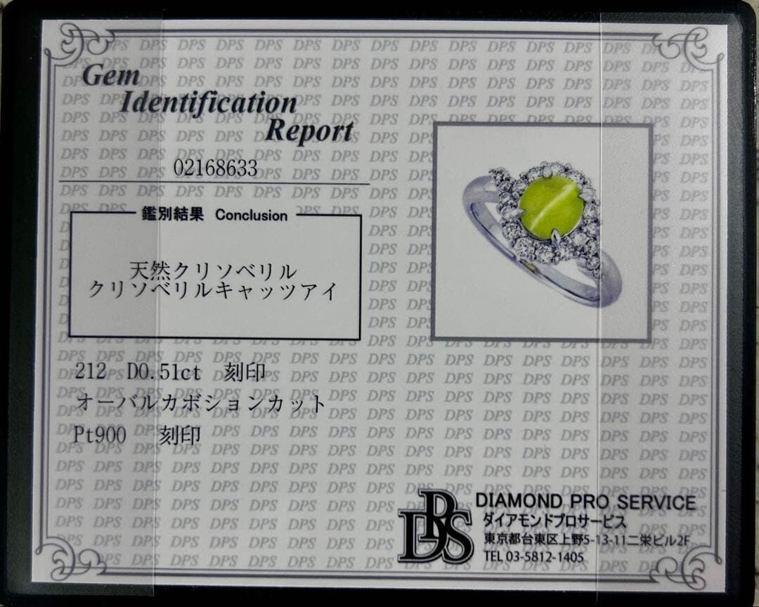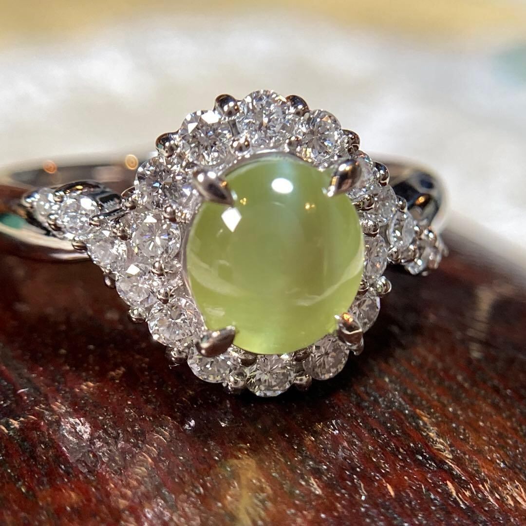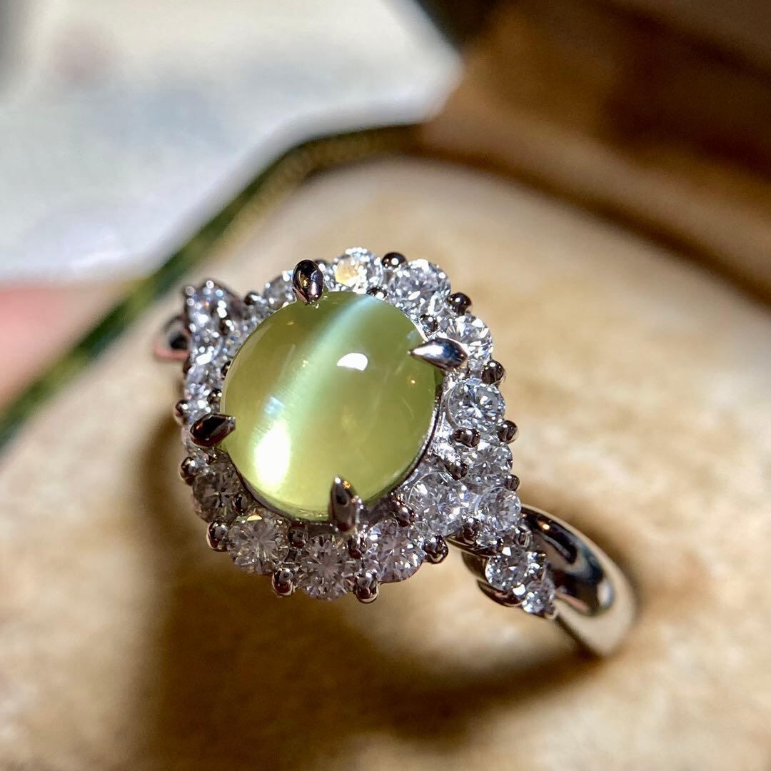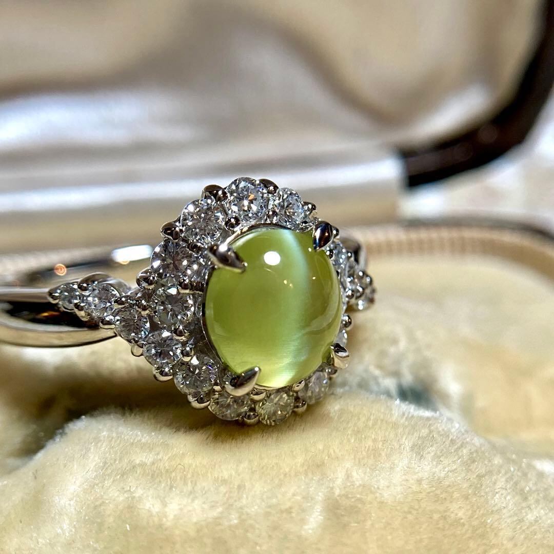 pt900 ミルク&ハニー 透明度抜群クリソベリルキャッツアイ ダイヤ 指輪