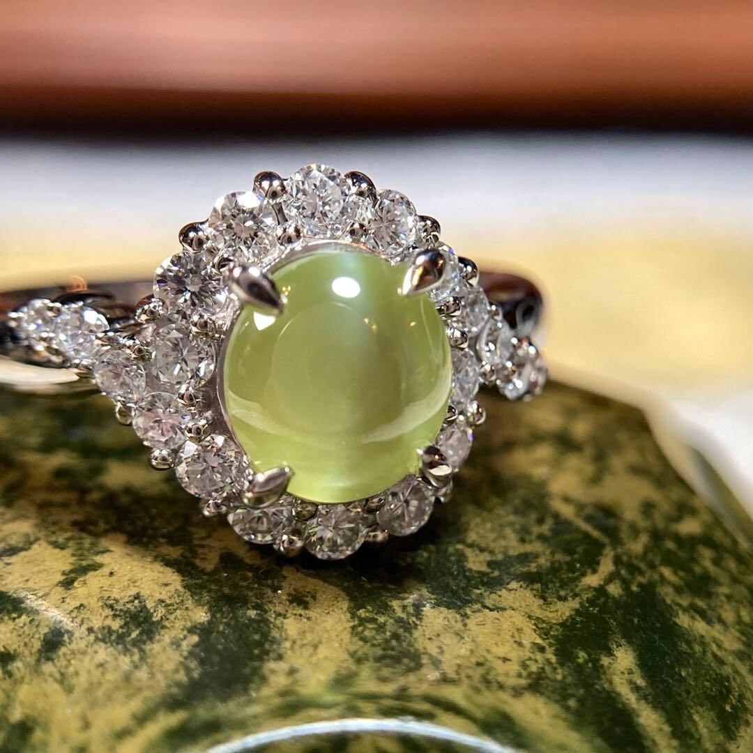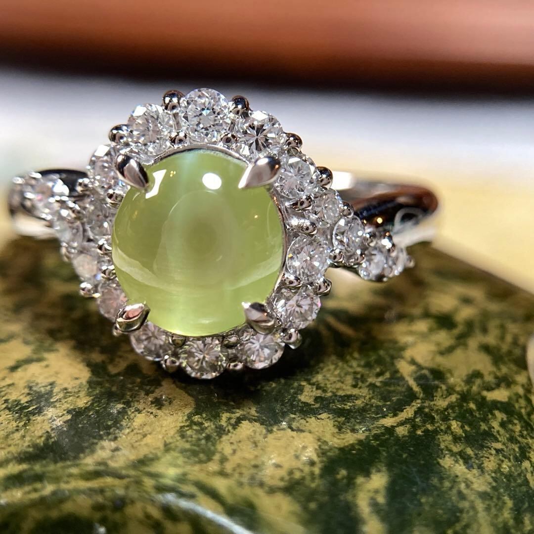 やわらかな光をたたえた、神秘的な輝きが印象的なクリソベリルキャッツアイのリング。