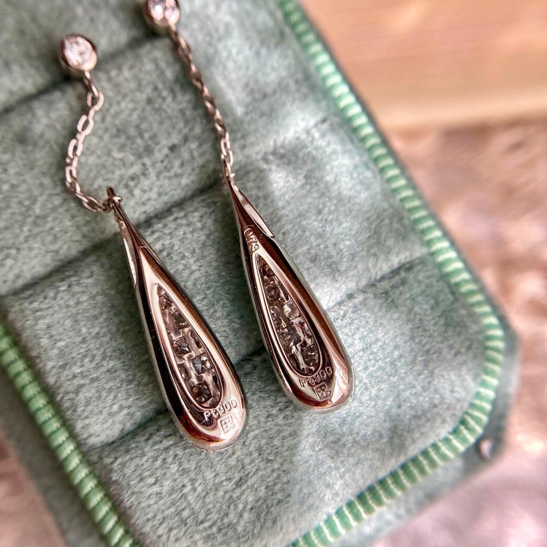 pt900 ブルーリバー 天然ダイヤモンド ドロップ型 ピアス