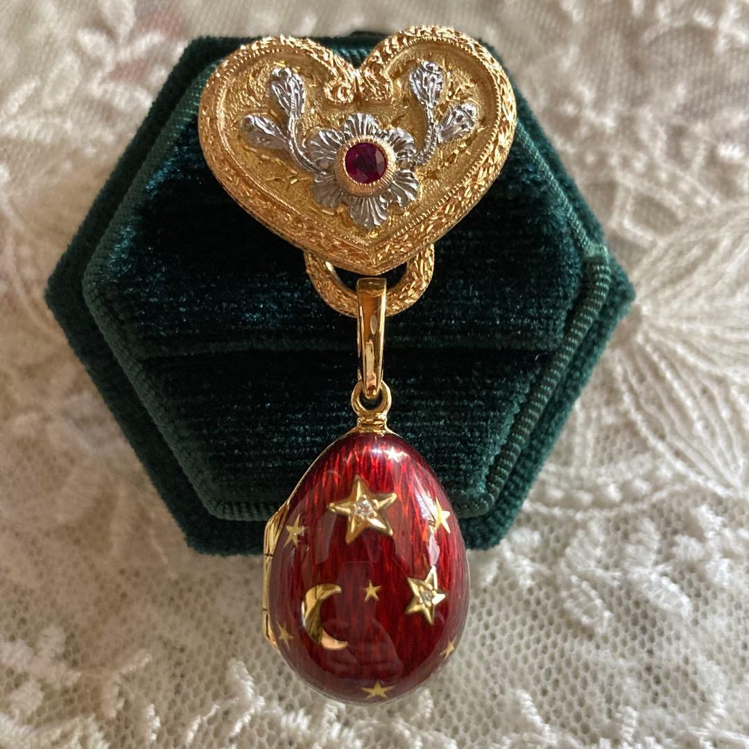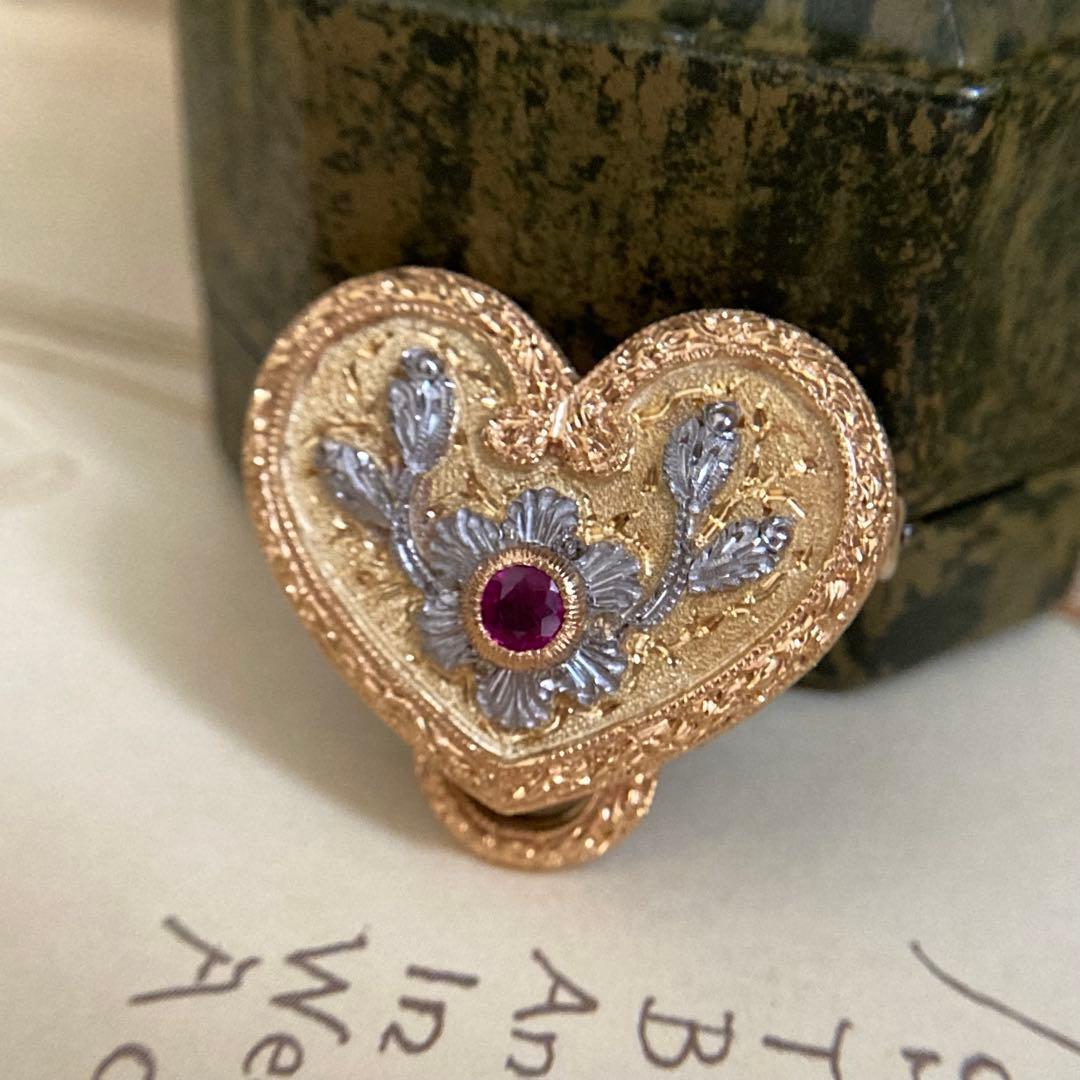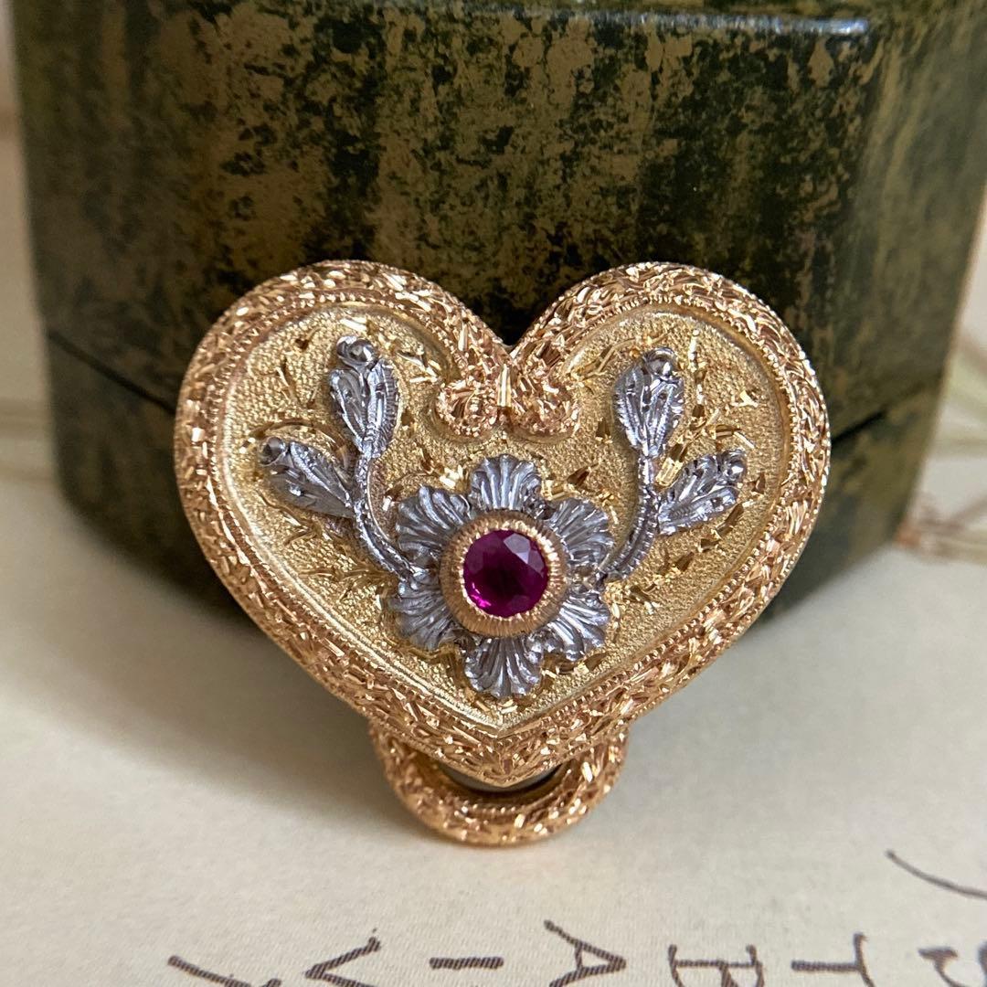 k18 ローマの至宝 カッツァニーガ ハートシェープ ルビー ブローチ