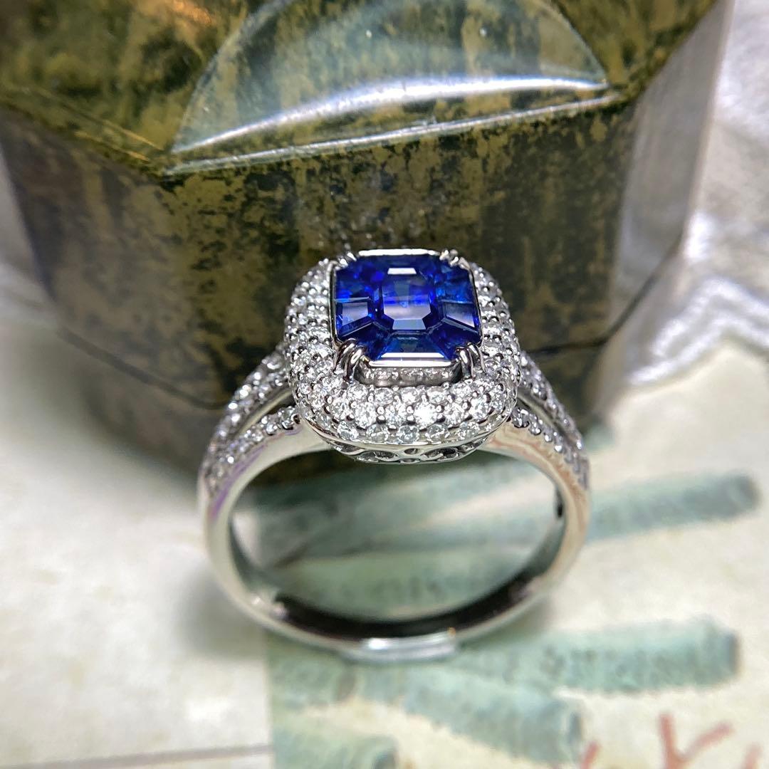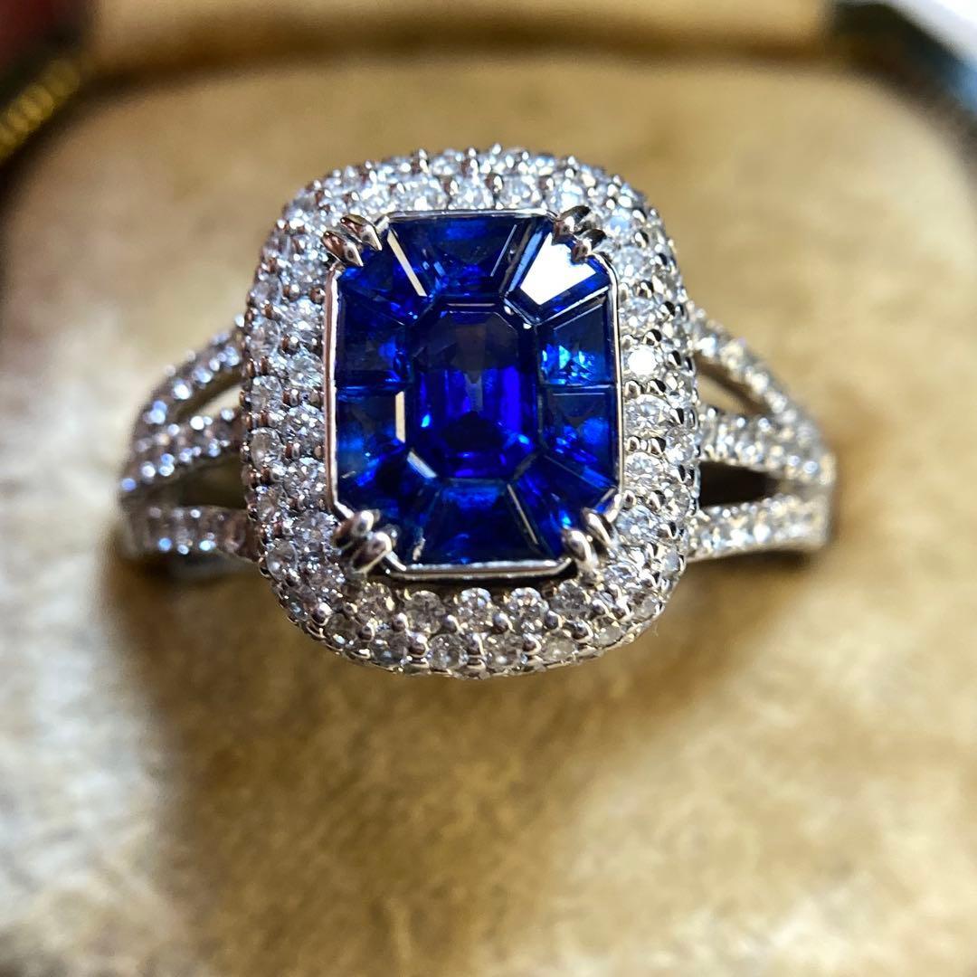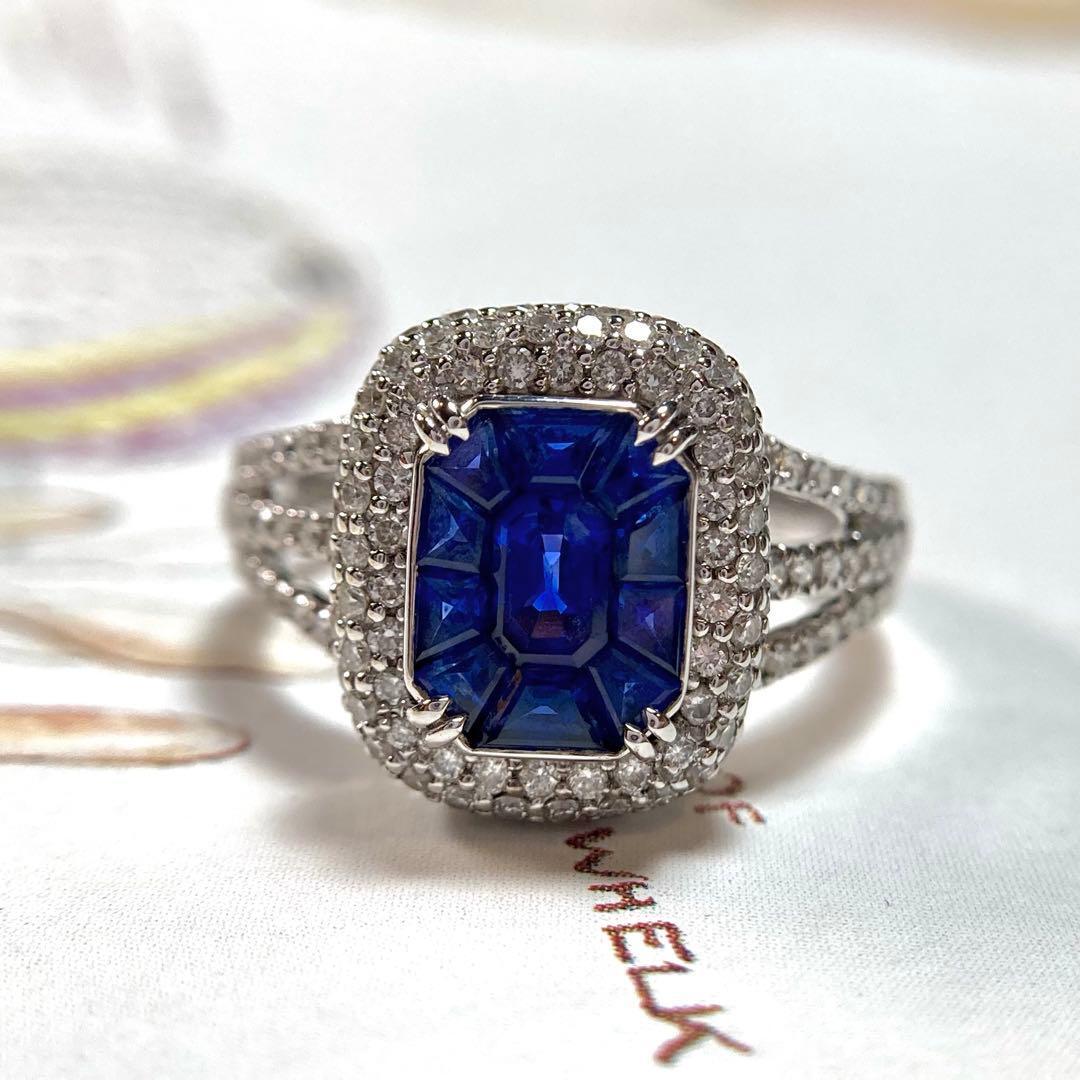 15k カリブレカットロイヤルブルーサファイア ダイヤモンド 指輪 リング