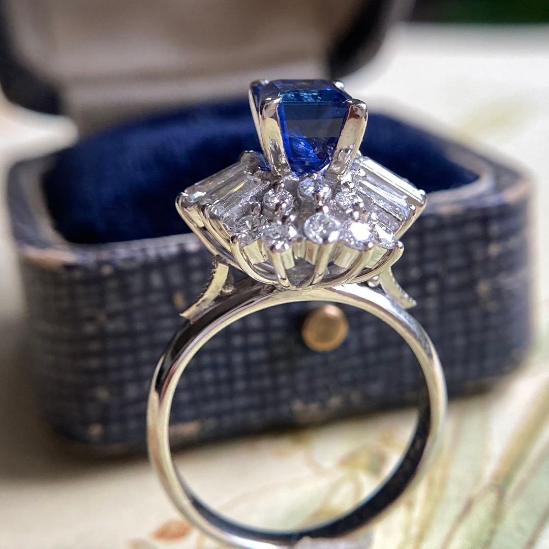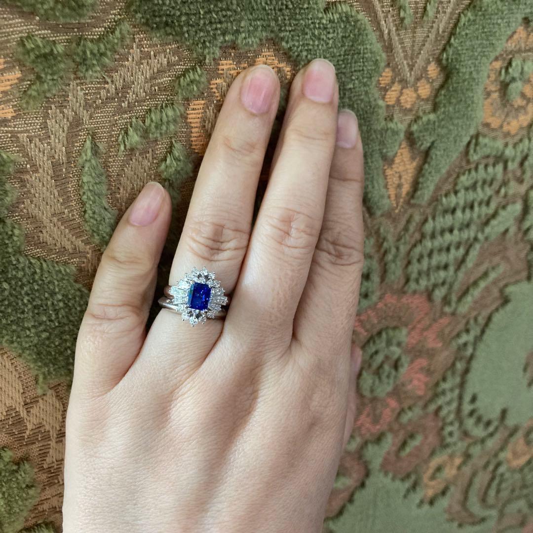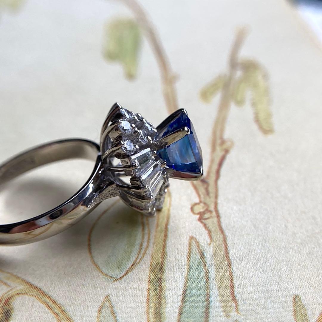 pm900 スリランカ産非加熱サファイア ダイヤモンド 指輪 昭和レトロ リング