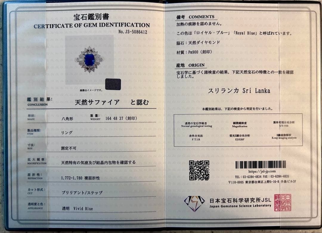 計算され尽くしたカットによって、鑑別でも確認されている濃厚なロイヤルブルーが、深く、澄み渡るように輝きを放ちます。