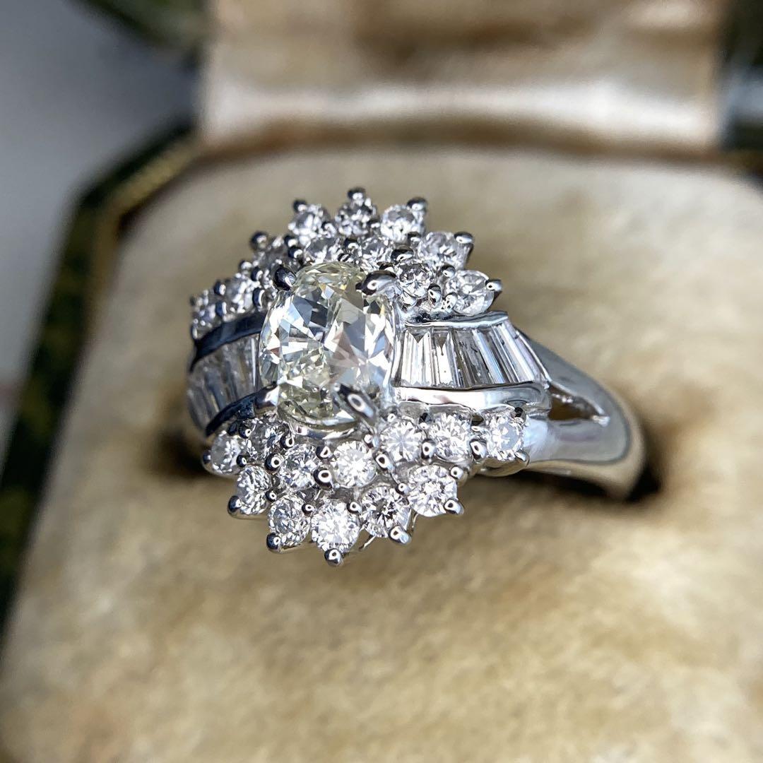 pt900 天然レモンイエローダイヤモンド0.71ct D0.66ct 指輪